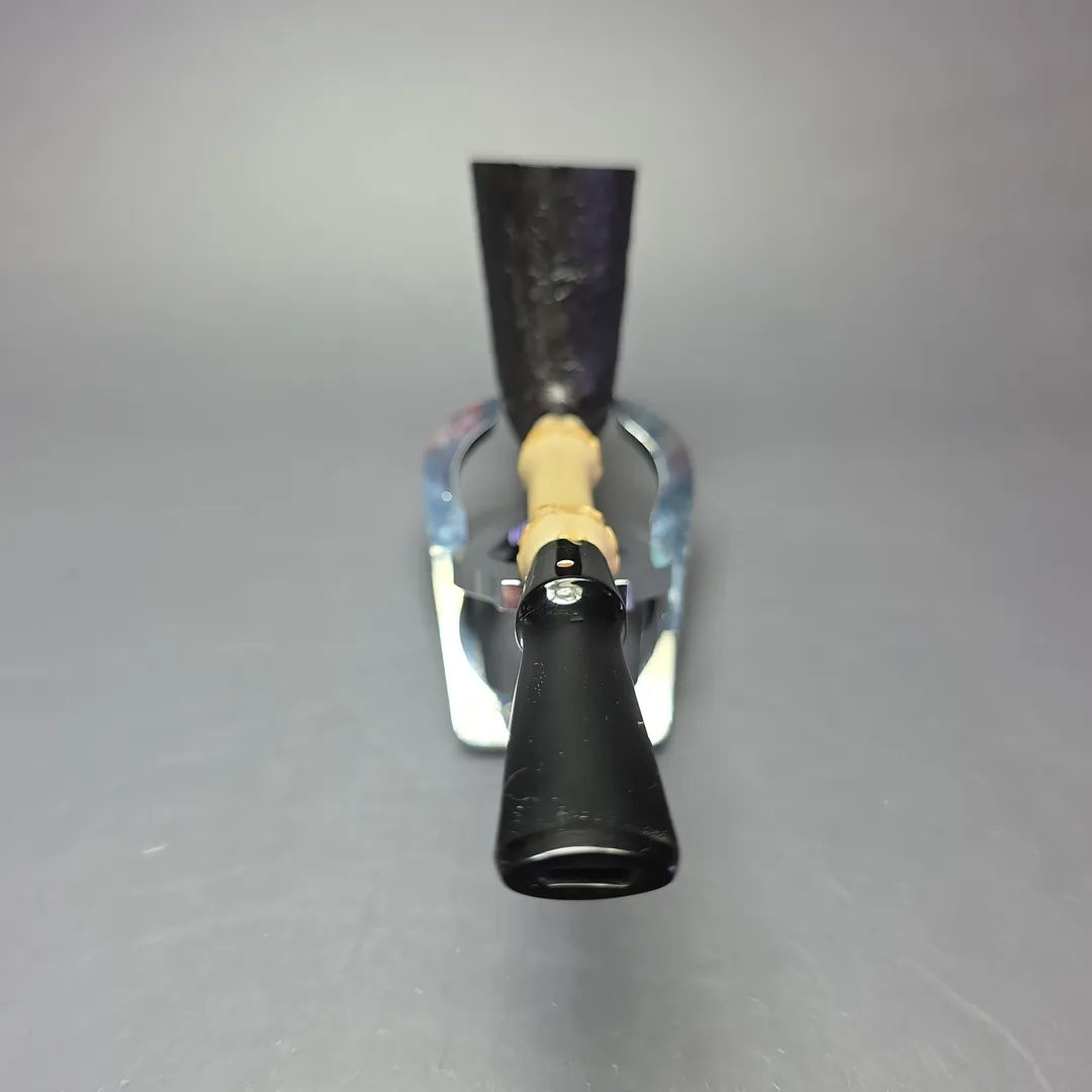 Though much of Graziano Tendi’s output is focused on traditional shapes in the Anglo-French mold, he does, from time to time, turn to the classics of another tradition, which has had a profound influence on pipe making for around 70 years now. I am, of course, talking about the “Danish,” or “Scandinavian” movement of the post-war years, one whose early designs—to which this Tendi pays homage—launched a thousand ships. This particular rendition is of one of the earliest shapes in the Scandinavian canon, the Nefertiti, designed by Sixten Ivarsson in the 1950s. A tall, narrow chambered, stacked Dublin, the shape is characterized by its unusual “footed” figure, along with a profound lightness, to which this variant’s bamboo shank extension contributes significantly (as was often the case with Ivarsson’s designs). One last touch that makes this homage especially faithful is its slight asymmetry; the story goes that, while Ivarsson was carving a Dublin one day, a small flaw in the briar at the very top of its bowl appeared, which Ivarsson decided to slough off. The rim was thus left at a slight horizontal incline perpendicular to the shank, in a manner that resembled the crown of the ancient Egyptian queen, hence the name.