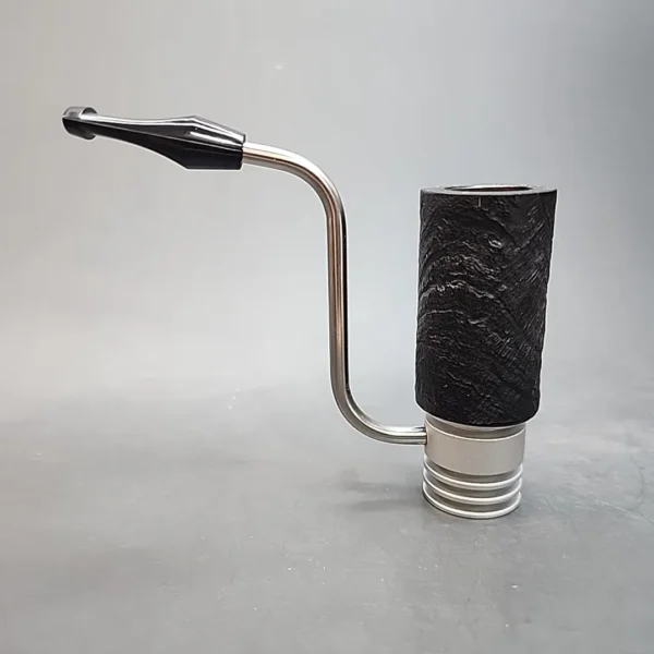 The Radiator pipe is a curious innovation in pipe functionality. Created by Hekthor Wiebe, a resident of Winnipeg, Canada, these pipes are designed to condense moisture during smoking, allowing the moisture to fall into a well at the base of the pipe. It is made of anodized aluminum, stainless steel, acrylic (for the stem), and Italian briar (for the bowl). Expect a cool, dry smoke from this one. Judging by the height of the bowl, I would also imagine that this pipe handles flake tobaccos marvelously.