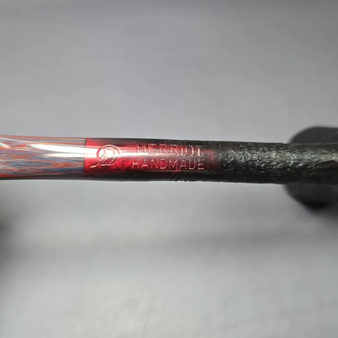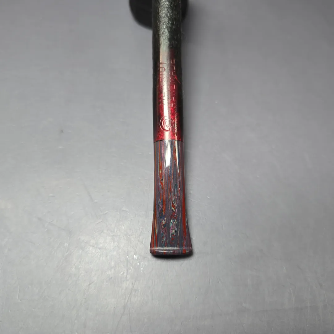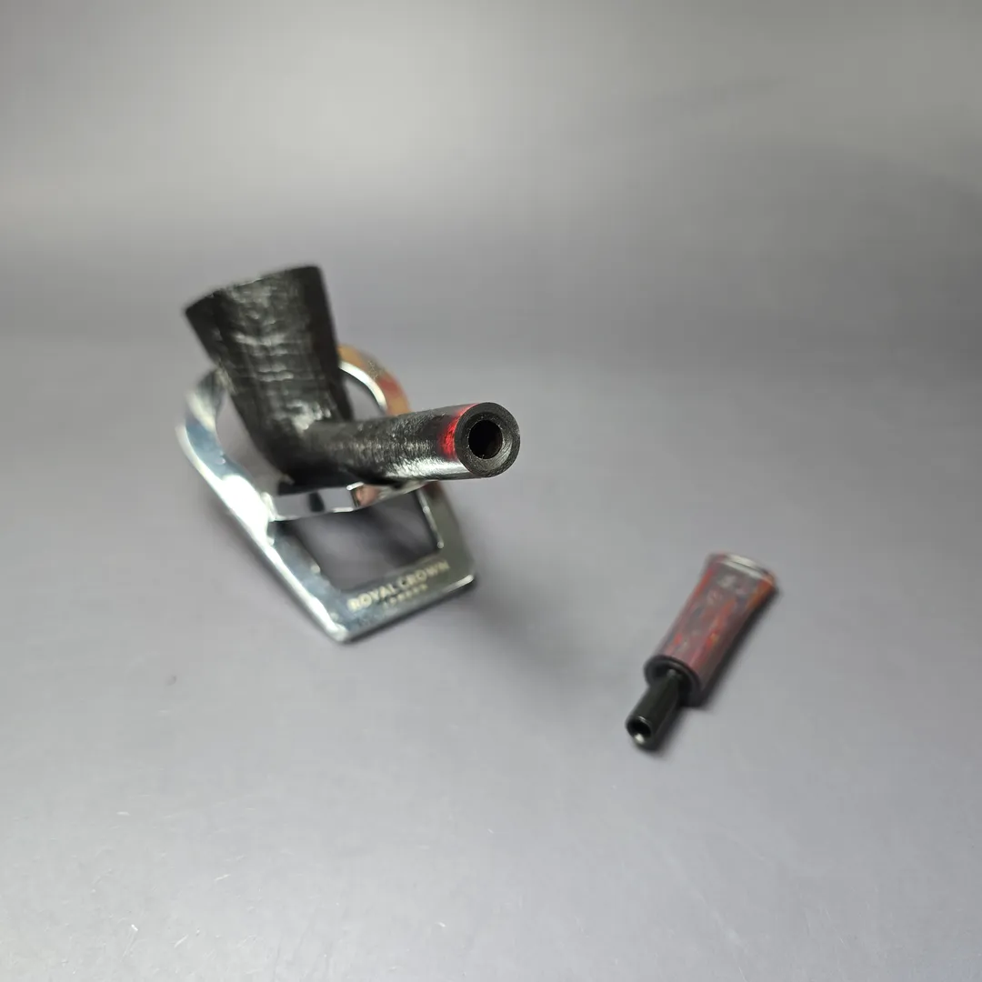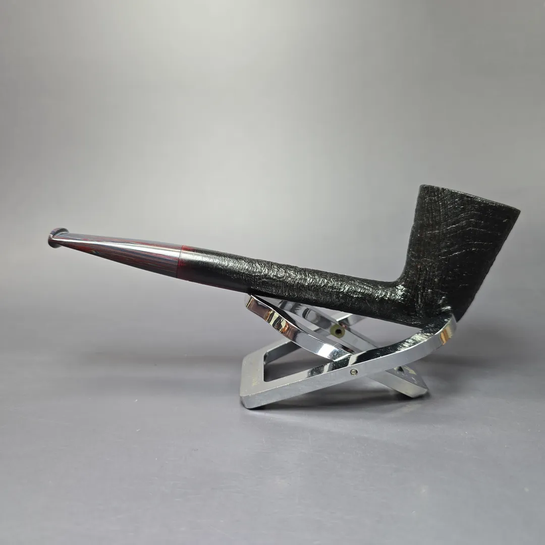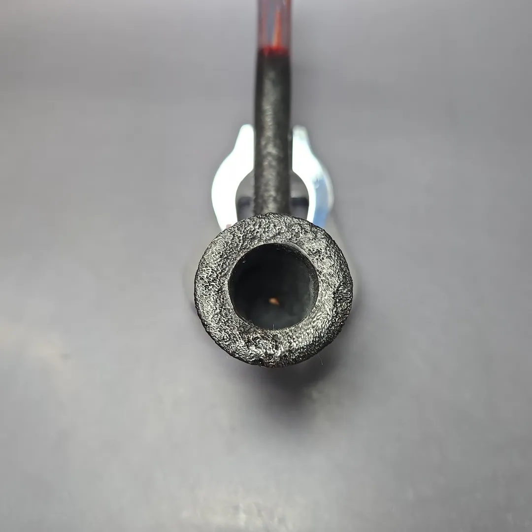 Chris Herriot has always had a fondness for the classics of Anglo-French pipe making, and it was his renditions of these shapes that first brought him widespread acclaim. On the other hand, even in his most traditional designs, there’s usually a healthy measure of the modern. In the case of this one, it retains much of the shaping, proportions, and finishing of the great, early 20th century makes, such as Barling or Charatan, while adding its own, slightly less conventional touches. Most notably is its blending of the Liverpool and the Dublin, though a closer inspection also reveals a second, very contemporary juxtaposition—that of the pipe’s modest, dark sandblast finish and an almost psychedelic ebonite mouthpiece.