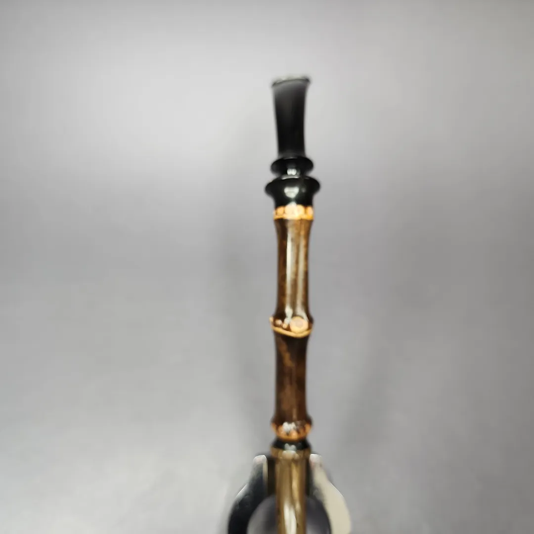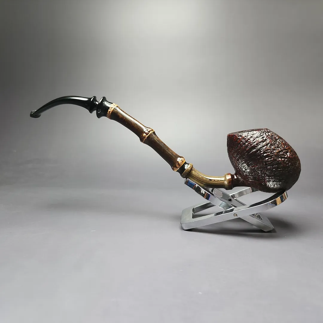 In the context of Western pipe making, bamboo rose to prominence as a simple means of saving on briar during post-war shortages, but it quickly grew to be appreciated for its aesthetic and functional properties. Bamboo stuck around long after briar scarcity stopped being a pressing concern, and remains a staple in pipe design to this day. More recently, however, artisans and workshops have realized that one can do some pretty wild things with bamboo shank extensions, especially when it comes to a pipe’s curvature. This pitcher-style egg from HS Studio takes things even further than most as far as that goes, taking the form of a churchwarden with a shank extension that is simply wild in both length and curvature. It’s a novel design if I ever saw one.