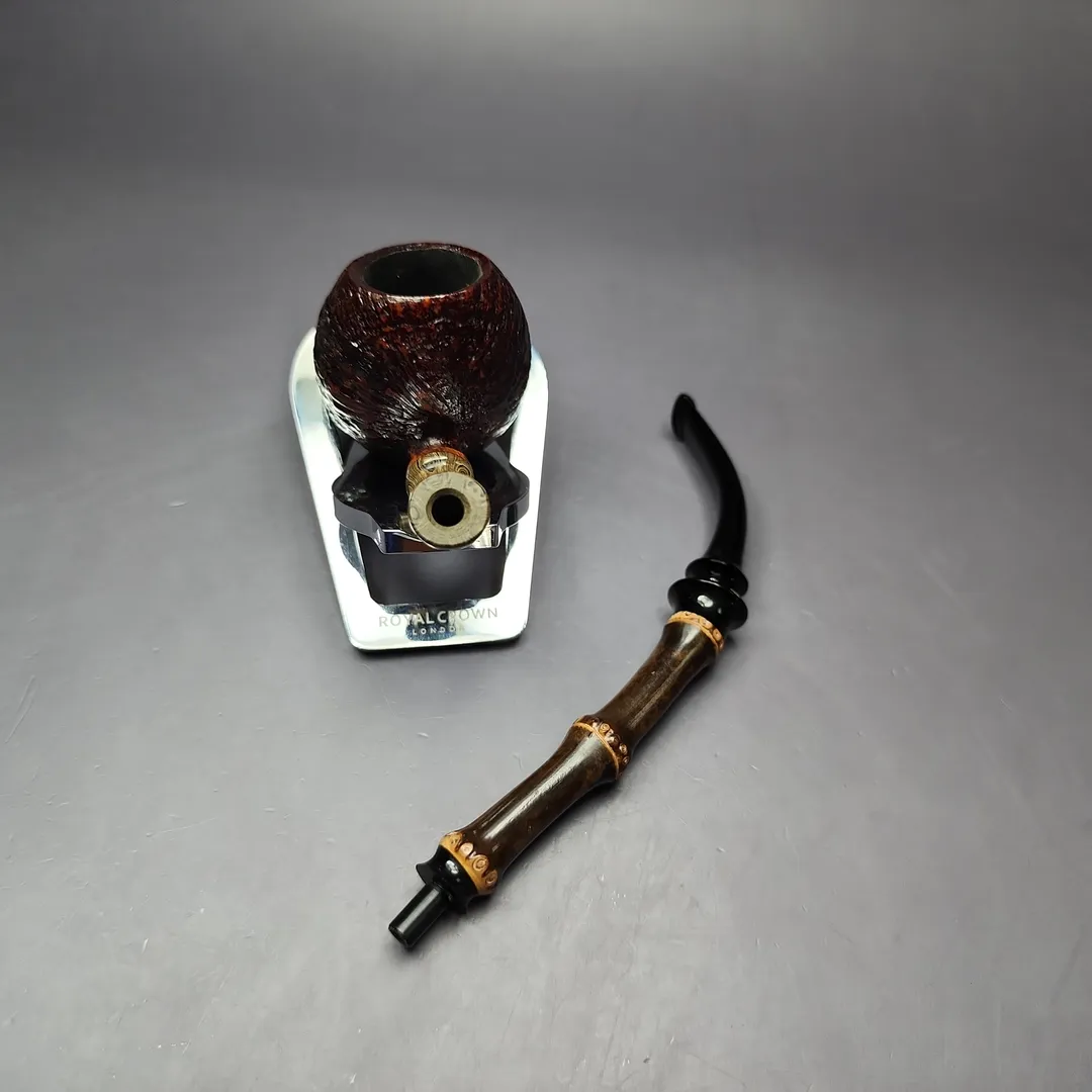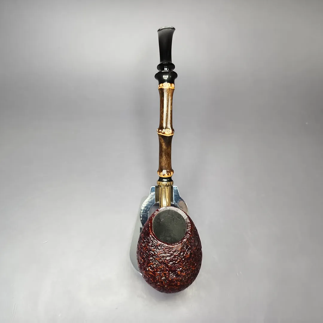 HS Studio Sandblasted Egg Churchwarden w/ Bamboo Estate Briar Pipe, Unsmoked