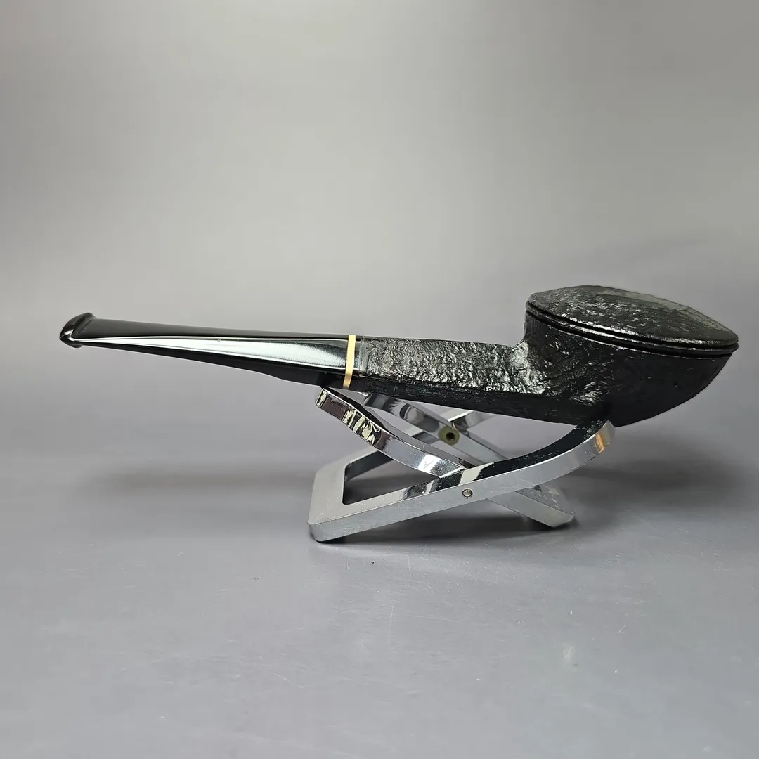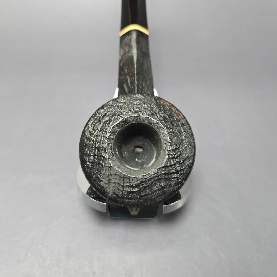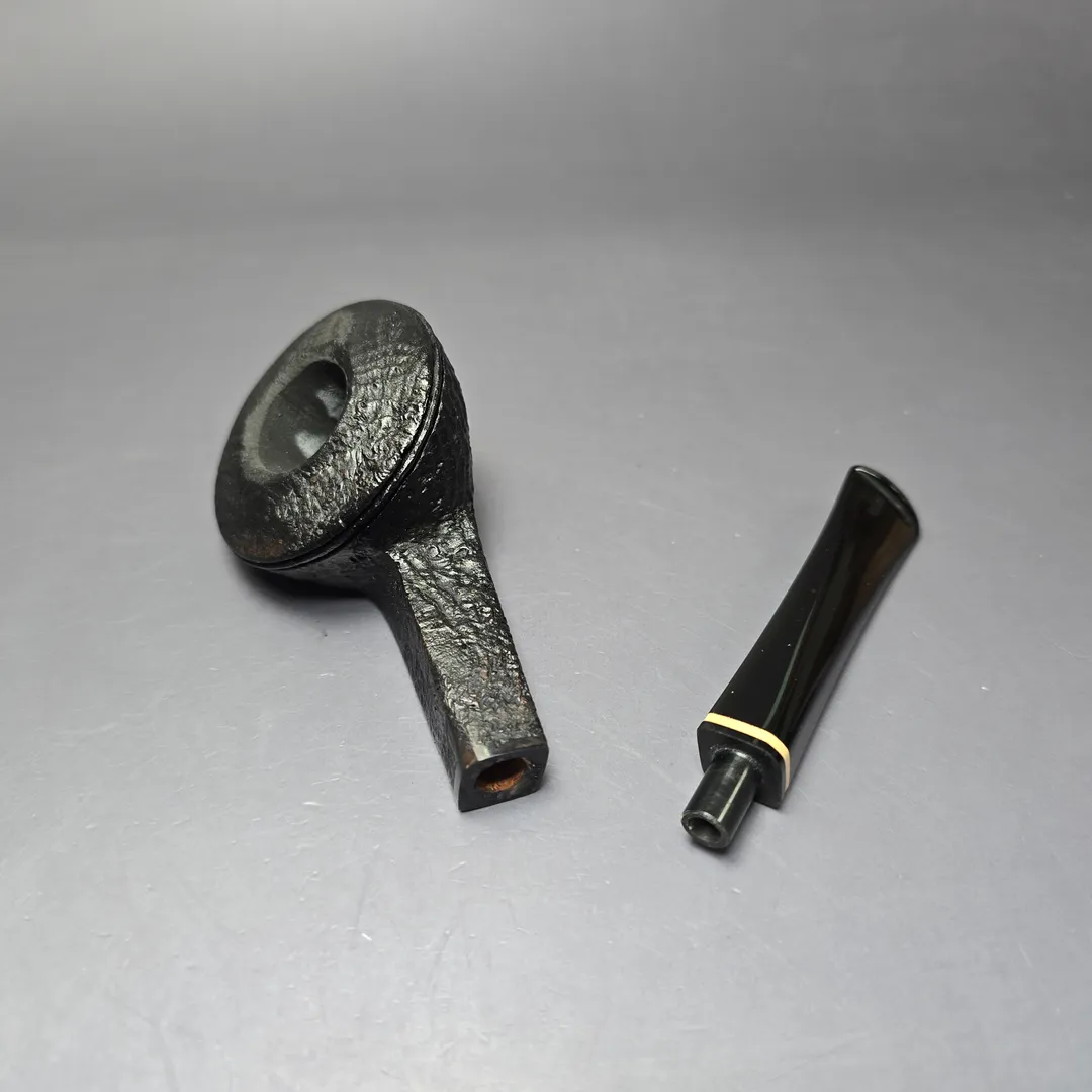 Though HS Studio largely creates “Danish” style pipes of all stripes, I have noticed that the workshop is by no means averse to more “traditional” designs. This one, for example is very traditional, taking the form of a sleek, squat bulldog, reminiscent of Anglo-French shapes at the turn of the 20th century. As an extra classical touch, it is not only dressed in a dark sandblast and fitted with a black ebonite stem, but also features a stem inlay from what I think is boxwood, but which rather evokes another, more old fashioned off-white material, one that is no longer used in pipe design (at least, not the kind harvested from sources that are only recently deceased).