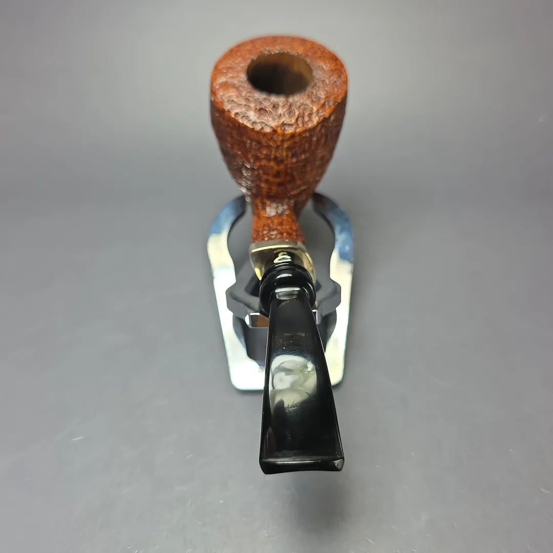 I have heard “on the grapevine,” as they say, that Il Ceppo may be closing down, which would be a genuine shame as far as Italian pipes go. Not only are Il Ceppo pipes especially beautiful and well made, the workshop itself is a historic one, having been established at the very outset of the Pesaro tradition. This Il Ceppo, for example, is a lovely little Dublin rendition, with just a few tweaks here and there—like a slightly off-angle, elliptical shank, and a stepped figure at the base of the mouthpiece—that keep interesting, without going over the top and abandoning convention entirely. The sandblasting is especially nice, too, with an almost “webbed” ring grain relief that becomes increasingly craggier as it rises up the bowl.