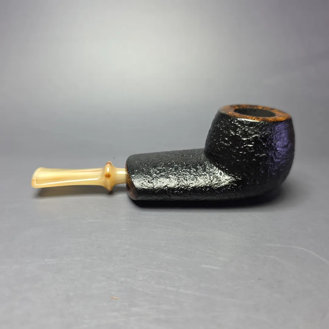 J Mouton Partially Sandblasted Wide Shank Apple / Horn Handmade Briar Pipe, New
