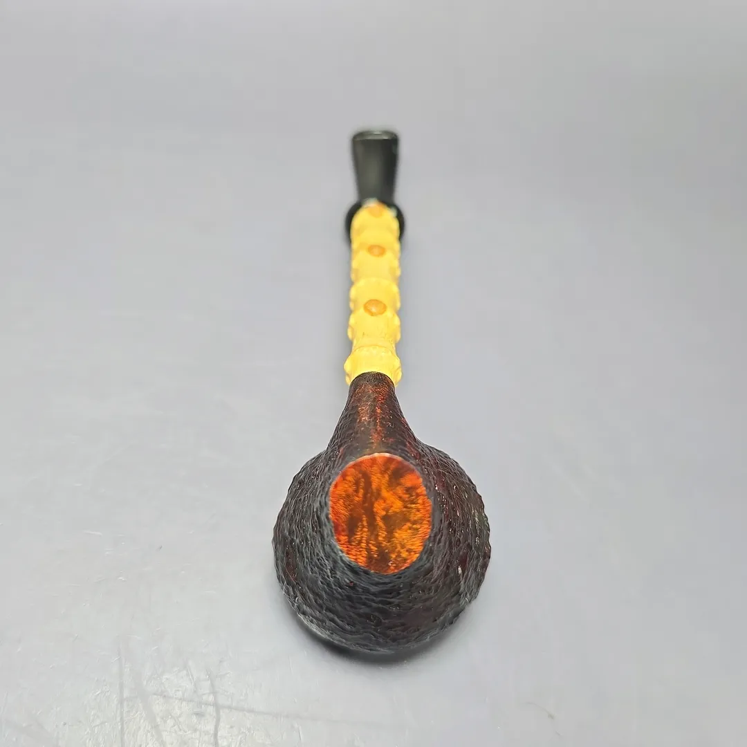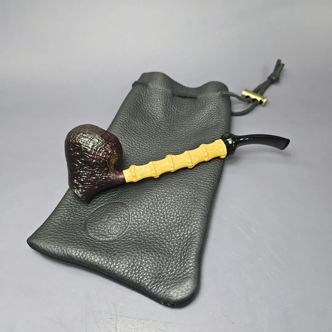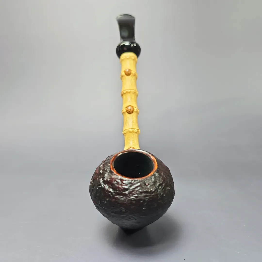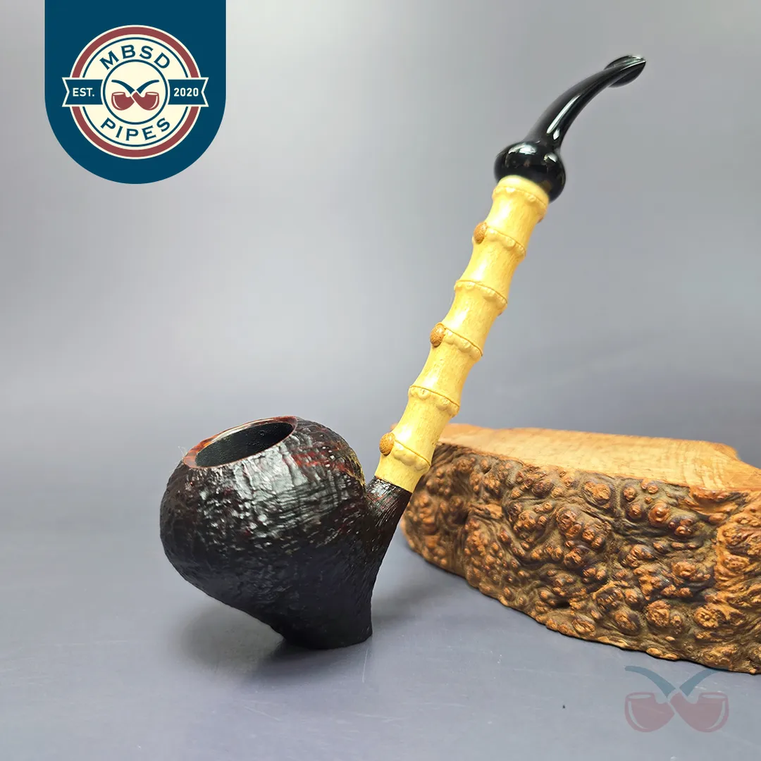 J Mouton Sandblasted Acorn Sitter w/ Bamboo Handmade Briar Pipe, New