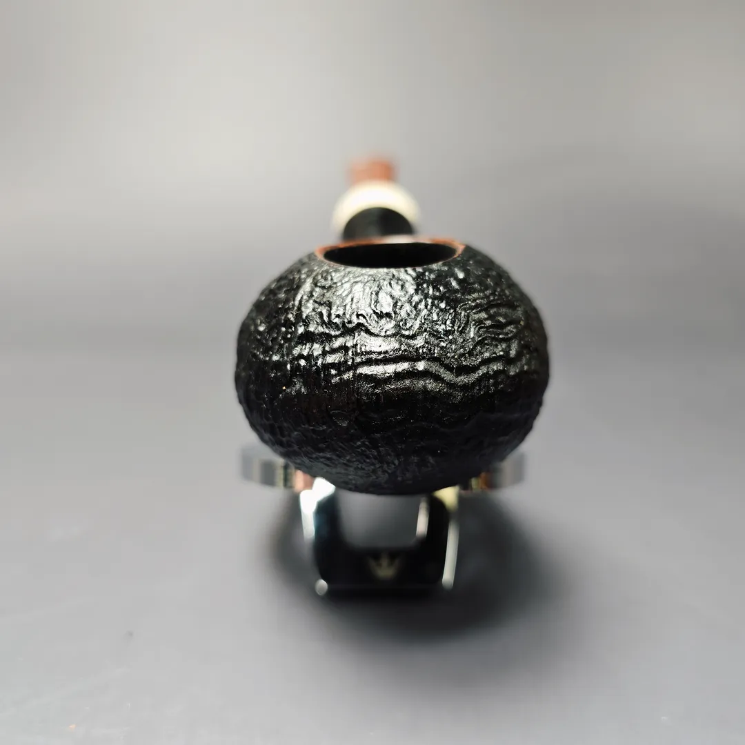 Those who have followed Jason Mouton’s work over the years will know that he’s no stranger to squat shapes. Rather than settle on a single, preferred design, however, Mouton’s are all refreshingly different. This one, for example, blends the “squat tomato” motif common to contemporary American artisan pipe making with another American motif, though this time borrowed from Lars Ivarsson: the atypically long shank. Mouton’s pipe is thus broad and bulbous, yet simultaneously slight and slender; a branch sprouting with fruit, not unlike its namesake.