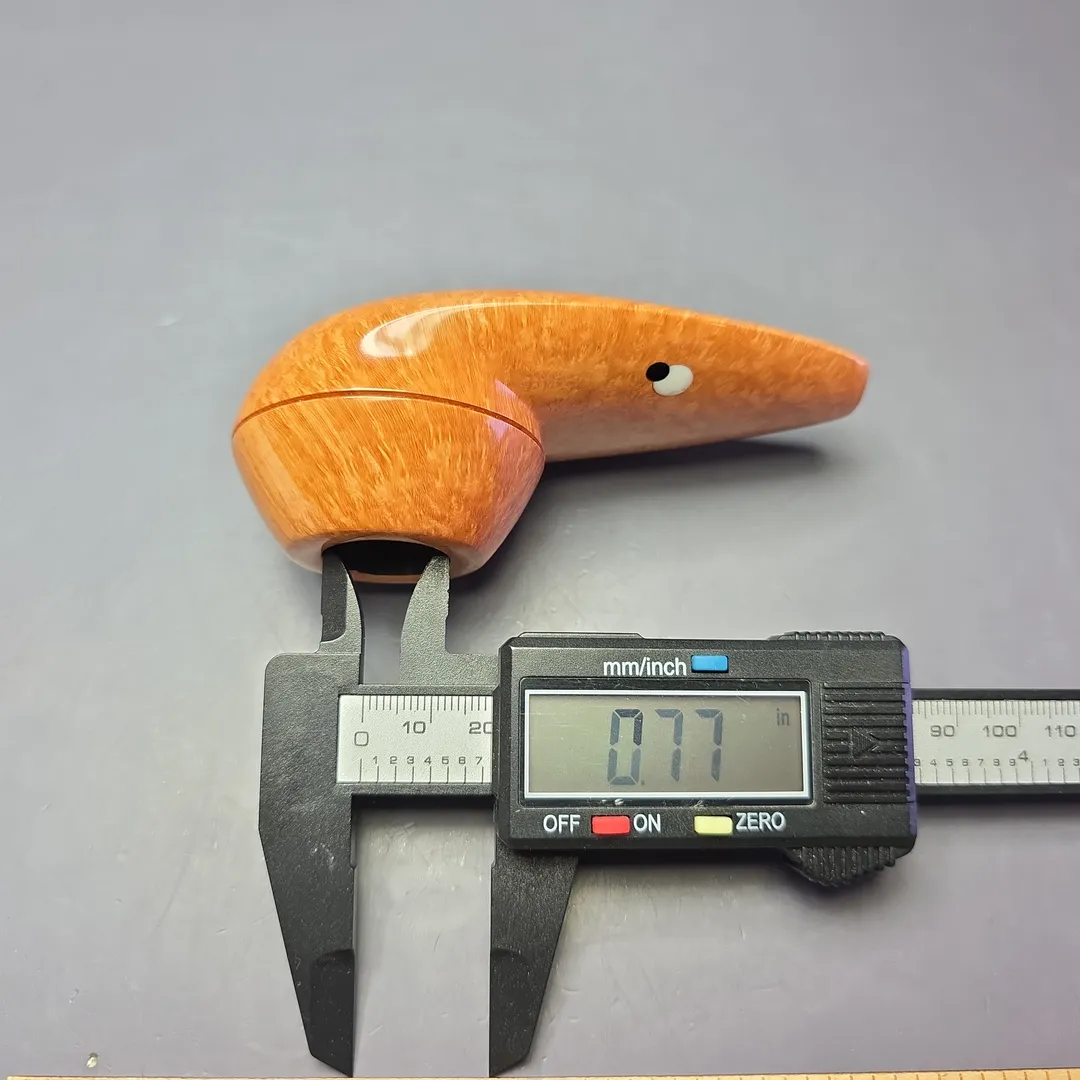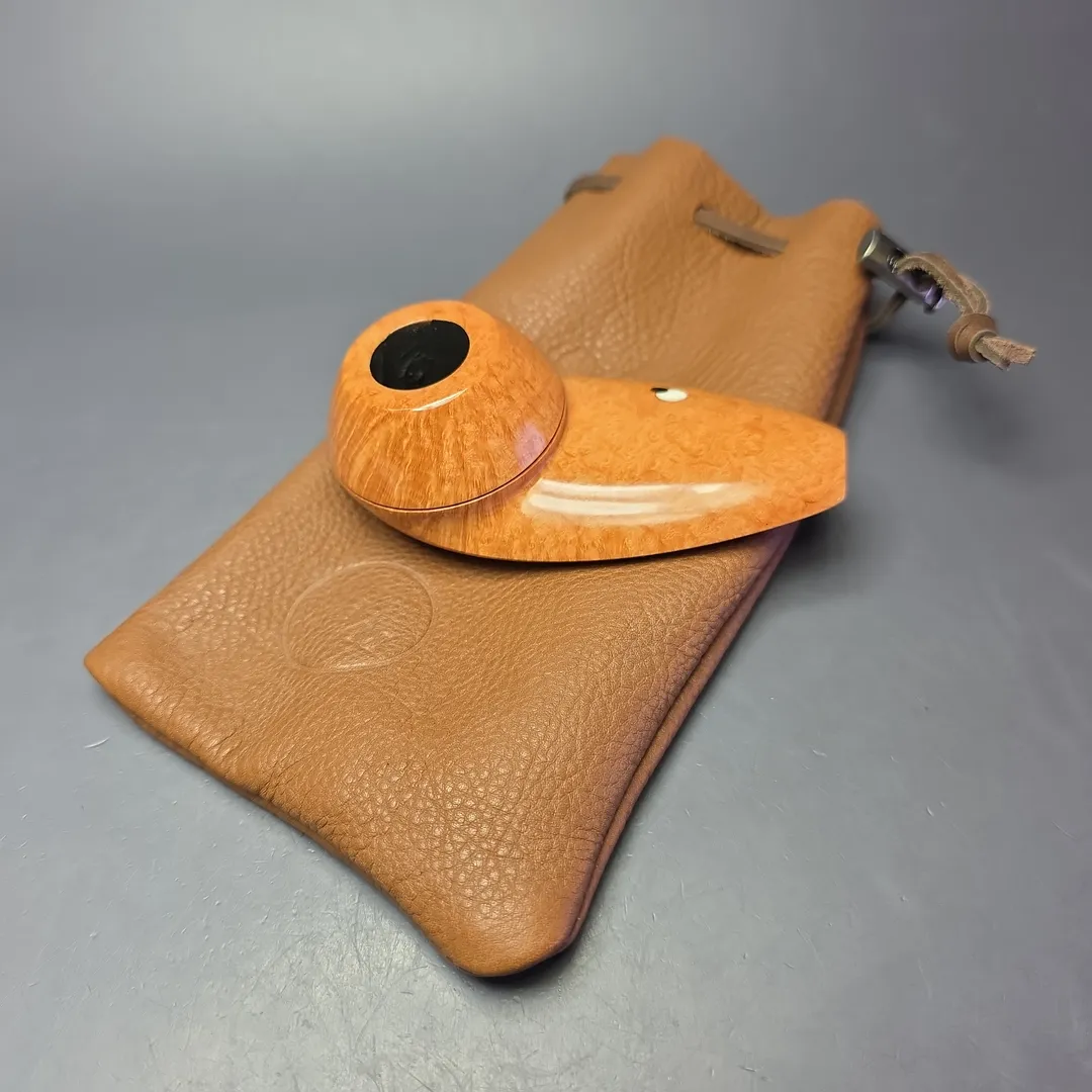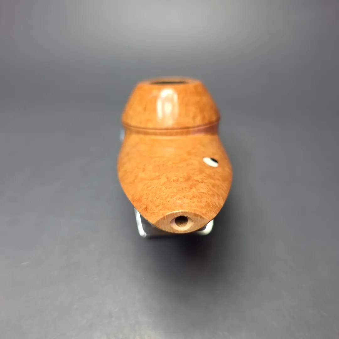 There are three main things at play in a design like this one. First, it is an “all briar” pipe, meaning that it is almost entirely comprised of briar (save for the small, fossilized walrus accents it wears). There is no separate mouthpiece; instead, like certain late 19th and early 20th pipes, both the “bowl” and the “mouthpiece” are fashioned from the same material and, in this instance, are entirely continuous. Second, the design borrows certain aspects from a far more modern genre of wide-shank pipe shapes, referred to by names such as the “Eskimo,” the “Inuit,” or the “surfing” bulldog. These are designs that began in post-war Denmark and America, with figures such as Tom Eltang and Ed Burak credited with their creation, and which have become staples in artisan pipes in the decades since. However, this all briar Eskimo by J. Mouton is a little different to typical all briar pipes and indeed to typical Eskimo pipes, and not just because it is a combination of the two. What makes this one truly different is its source of inspiration. Like many pipe shapes in the history of briar, this one was in part based on designs found in the non-briar pipes that preceded it; for Mouton, however, it was some of the earliest tobacco pipes in recorded existence, those of ancient civilizations in the Americas, that were his primary point of reference. The result is genuinely novel, while simultaneously having precedents across three epochs in the history of tobacco pipes.