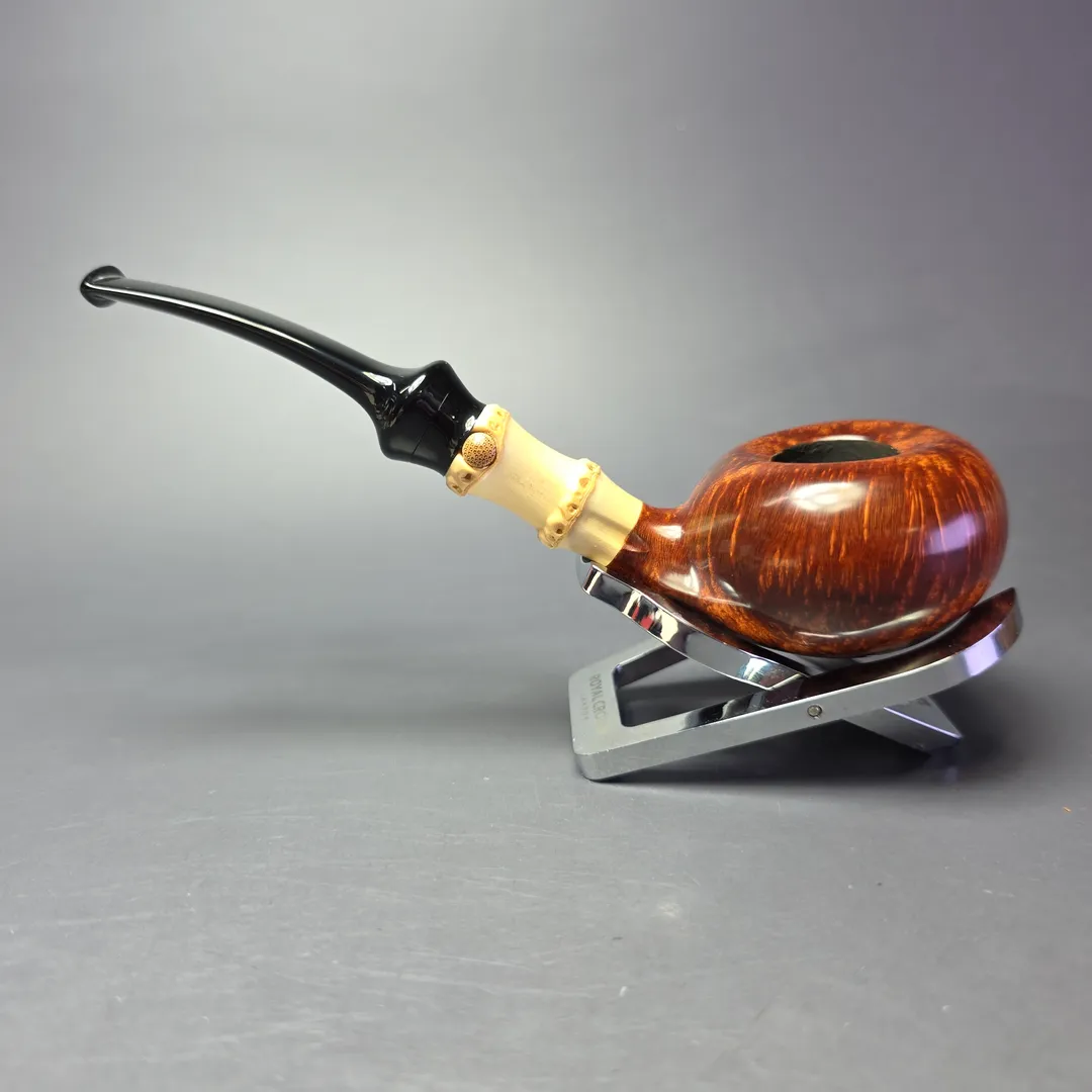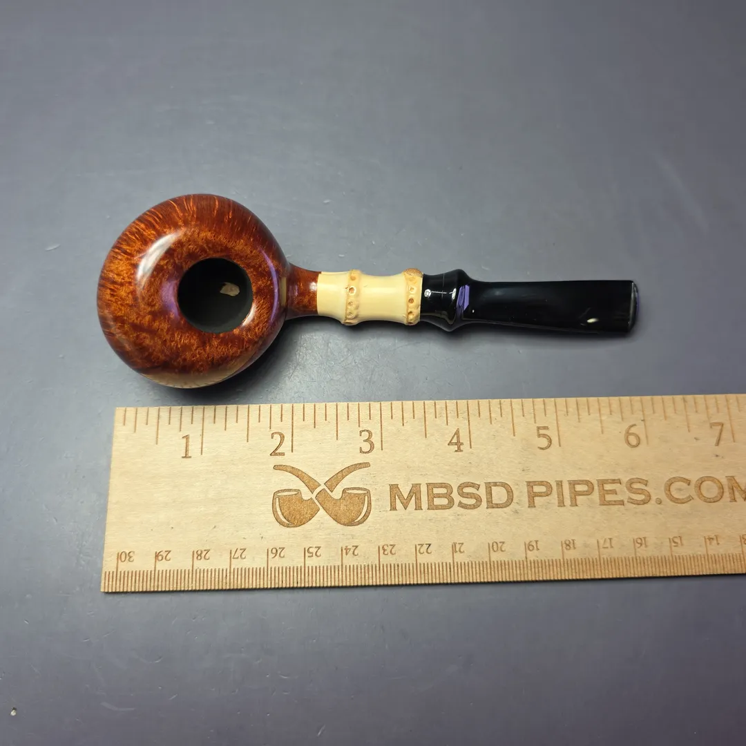 J Mouton Smooth Asymmetric Tomato w/ Bamboo Handmade Briar Pipe, New