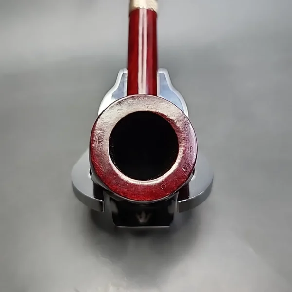 Third, the names of finishes were slightly different. This one here is a Jacobean “Reo.” Compared to Ferndown’s Reo finish, this one is much lighter and redder At this point in their career, Les and Dolly hadn’t settled on “Reo” for their darker red and brown stained smooth pipes.