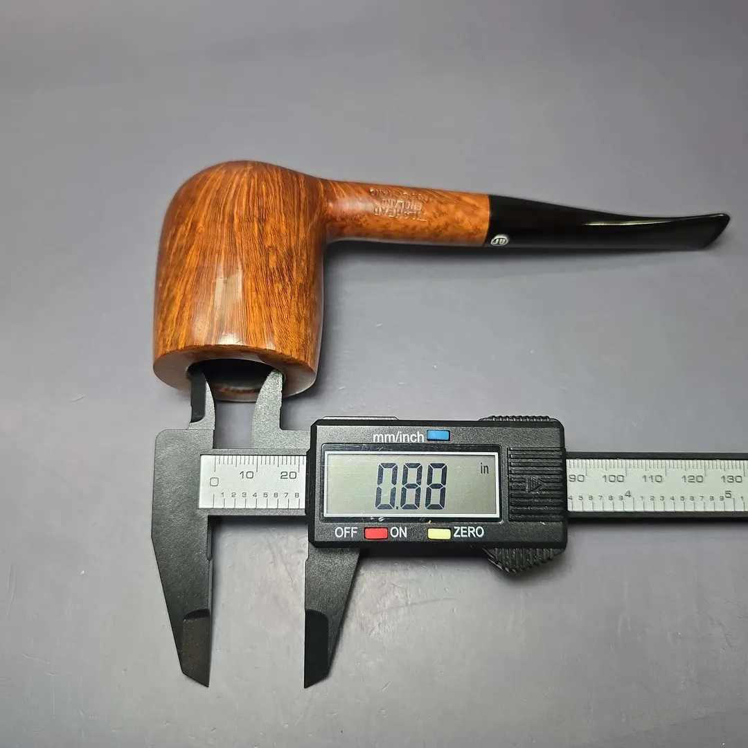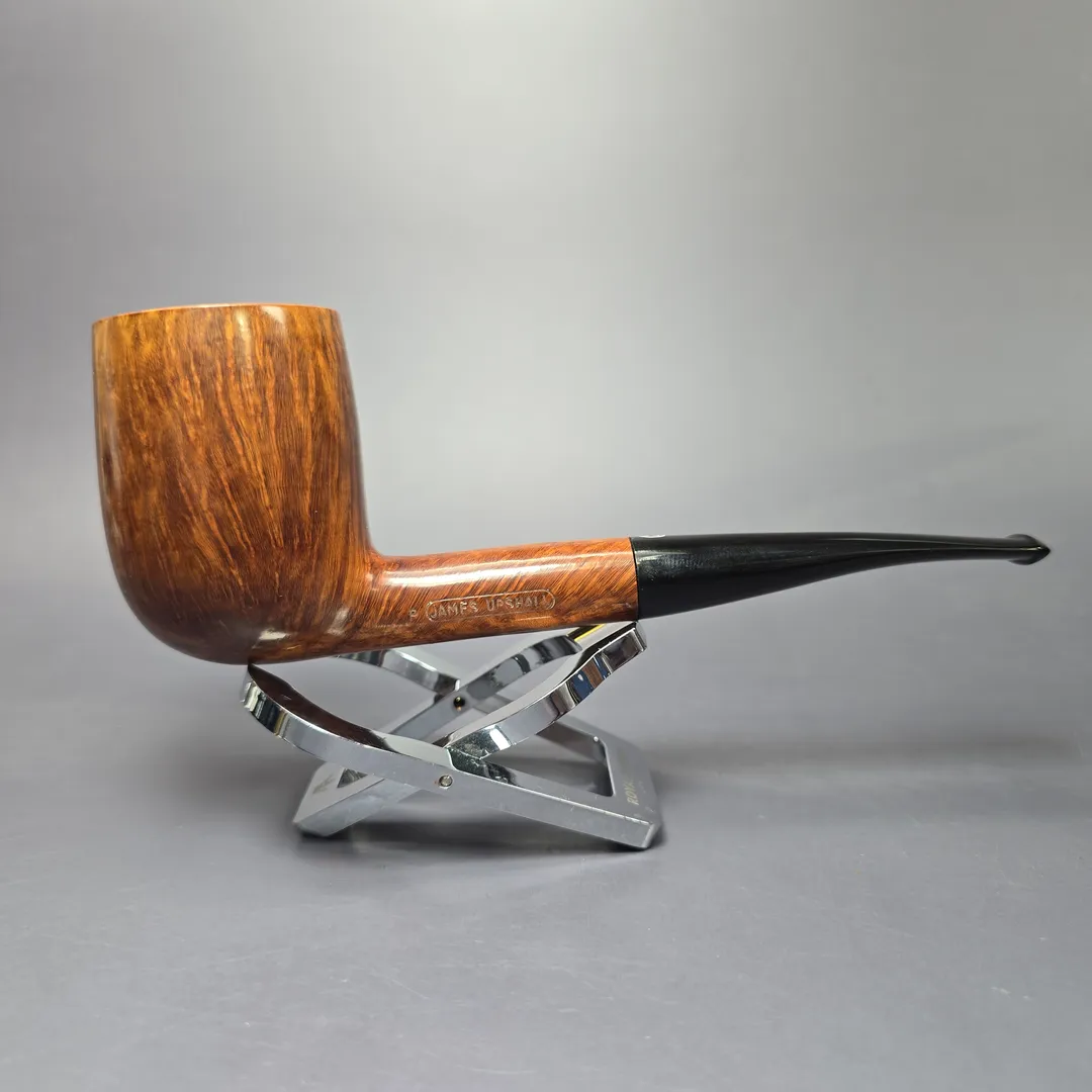 James Upshall was, along with Ferndown and Ashton, part of a new wave of British hand-made, high-grade pipes in the late 20th century, with their founders largely coming from previous positions in the factories of companies such as Dunhill and Charatan. James Upshall was founded in 1978 by Barry Jones and Ken Barnes, both of whom had previously worked for Charatan and who had worked their way up to being carvers Charatan’s higher-end, non-standard shapes. Jones and Barnes’ pipes quickly grew to being something of a status symbol, and were enjoyed by King Hussein of Jordan, Anwar Sadat, Bing Crosby, Yul Brynner, Robert Wagner and Tom Selleck. The company also made house-brand pipes for Astleys in London. Sadly, James Upshall pipes are no longer made, but their reputation as some of the finest hand-turned British pipes lives on.