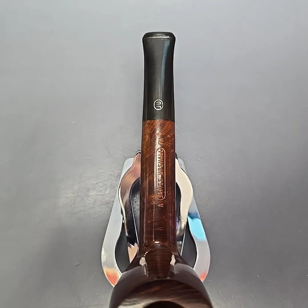 James Upshall was, along with Ferndown and Ashton, part of a new wave of British hand-made, high-grade pipes in the late 20th century, with their founders largely coming from previous positions in the factories of companies such as Dunhill and Charatan. James Upshall was founded in 1978 by Barry Jones and Ken Barnes, both of whom had previously worked for Charatan and who had worked their way up to being carvers Charatan’s higher-end, non-standard shapes. Jones and Barnes’ pipes quickly grew to being something of a status symbol, and were enjoyed by King Hussein of Jordan, Anwar Sadat, Bing Crosby, Yul Brynner, Robert Wagner and Tom Selleck. The company also made house-brand pipes for Astleys in London. James Upshall pipes are no longer made, but their reputation as some of the finest hand-turned British pipes continues to endure.