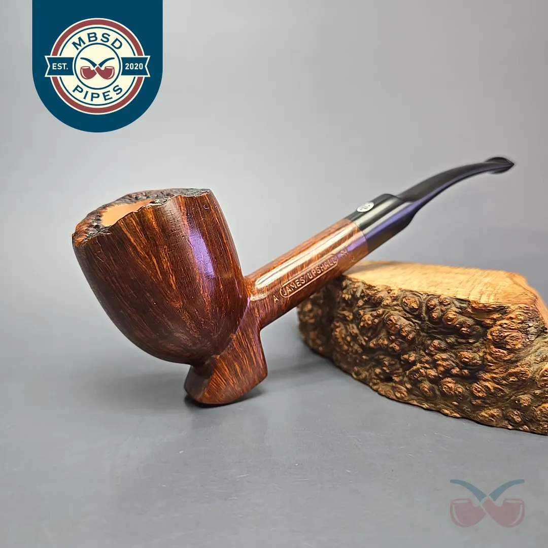 James Upshall was, along with Ferndown and Ashton, part of a new wave of British hand-made, high-grade pipes in the late 20th century, with their founders largely coming from previous positions in the factories of companies such as Dunhill and Charatan. James Upshall was founded in 1978 by Barry Jones and Ken Barnes, both of whom had previously worked for Charatan and who had worked their way up to being carvers Charatan’s higher-end, non-standard shapes. Jones and Barnes’ pipes quickly grew to being something of a status symbol, and were enjoyed by King Hussein of Jordan, Anwar Sadat, Bing Crosby, Yul Brynner, Robert Wagner and Tom Selleck. The company also made house-brand pipes for Astleys in London. James Upshall pipes are no longer made, but their reputation as some of the finest hand-turned British pipes continues to endure.