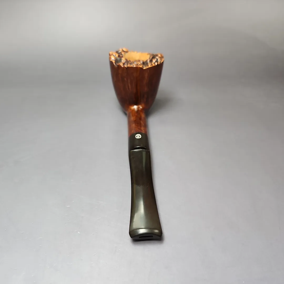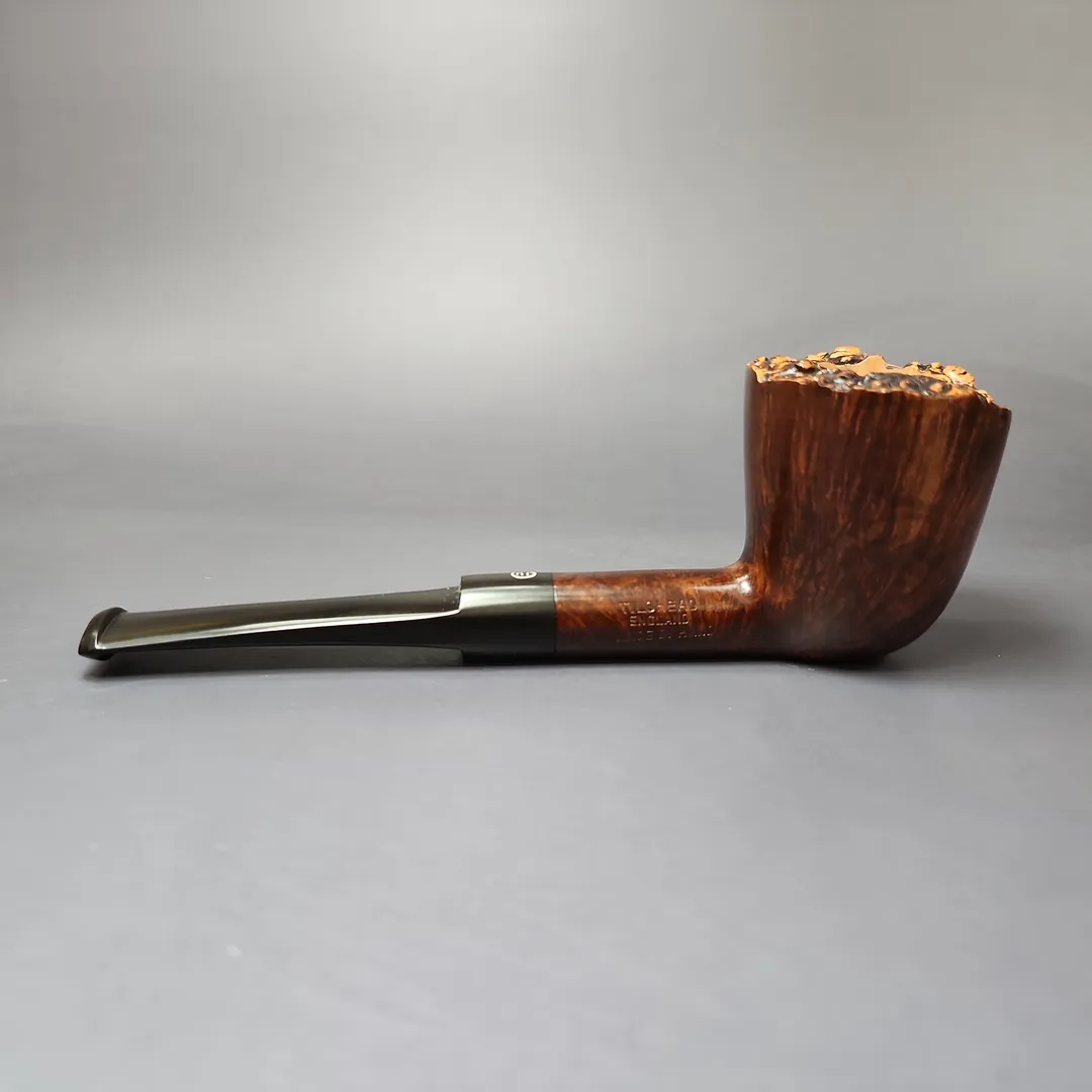 This one is a very nice, straight grain Dublin rendition, and features a plateaux burl rim, something much less common in English hand-turned pipes. It’s also very large, to the point where I’m a little stumped that the pipe wasn’t graded as an Empire Series Tradition, rather than the equivalent grade in James Upshall’s standard-size pipes, the A grade. I’ll price it as group 6 A in any case, which should make for a good deal for anyone who enjoys pipes of such a great stature.
