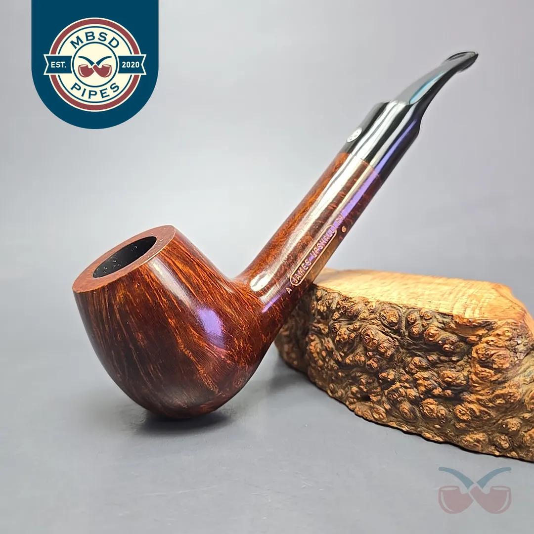 James Upshall A Grade Group 6 Smooth Long Shank Bent Billiard Estate Briar Pipe, Unsmoked