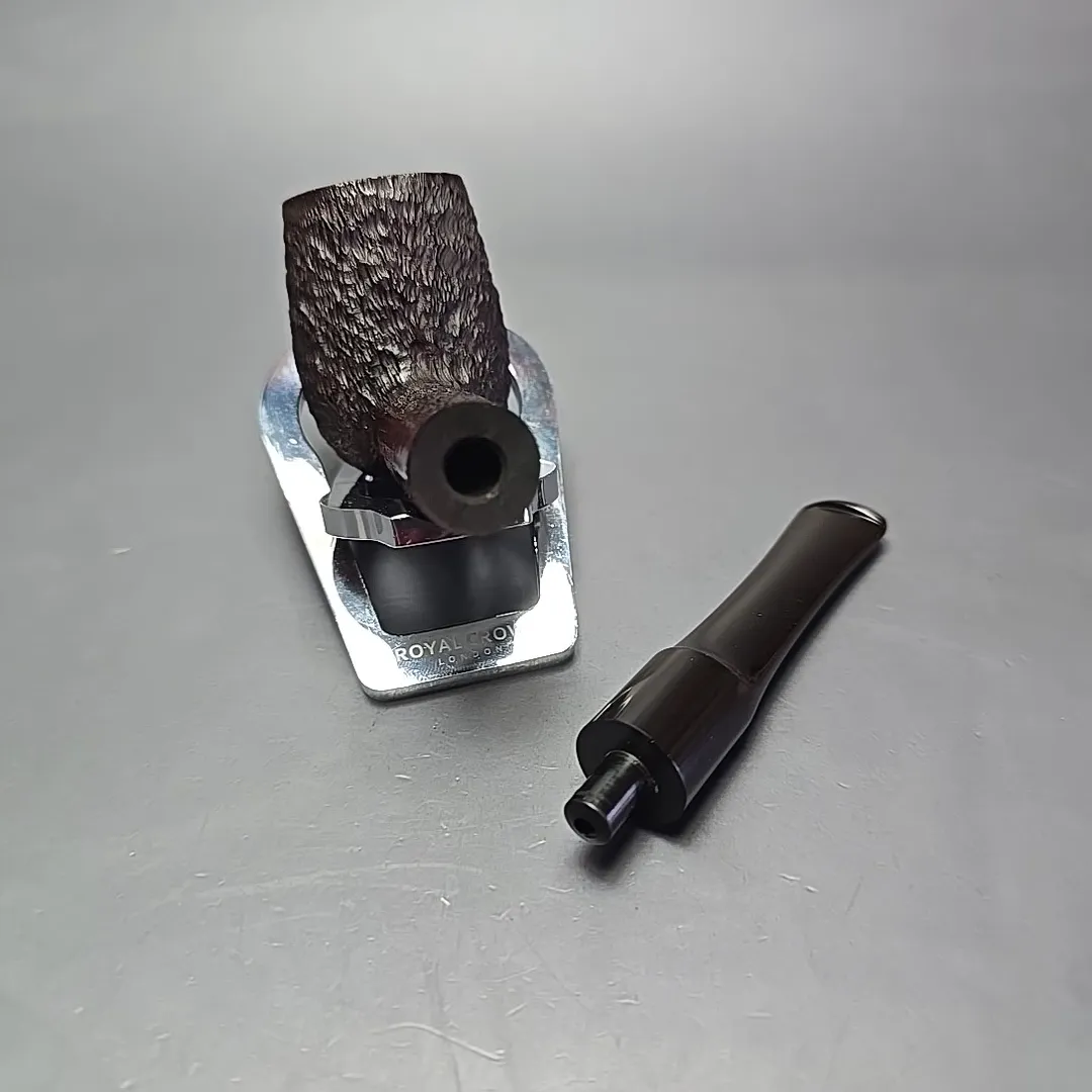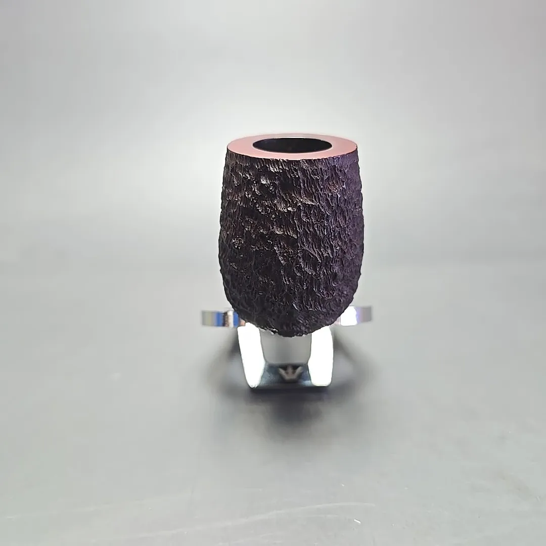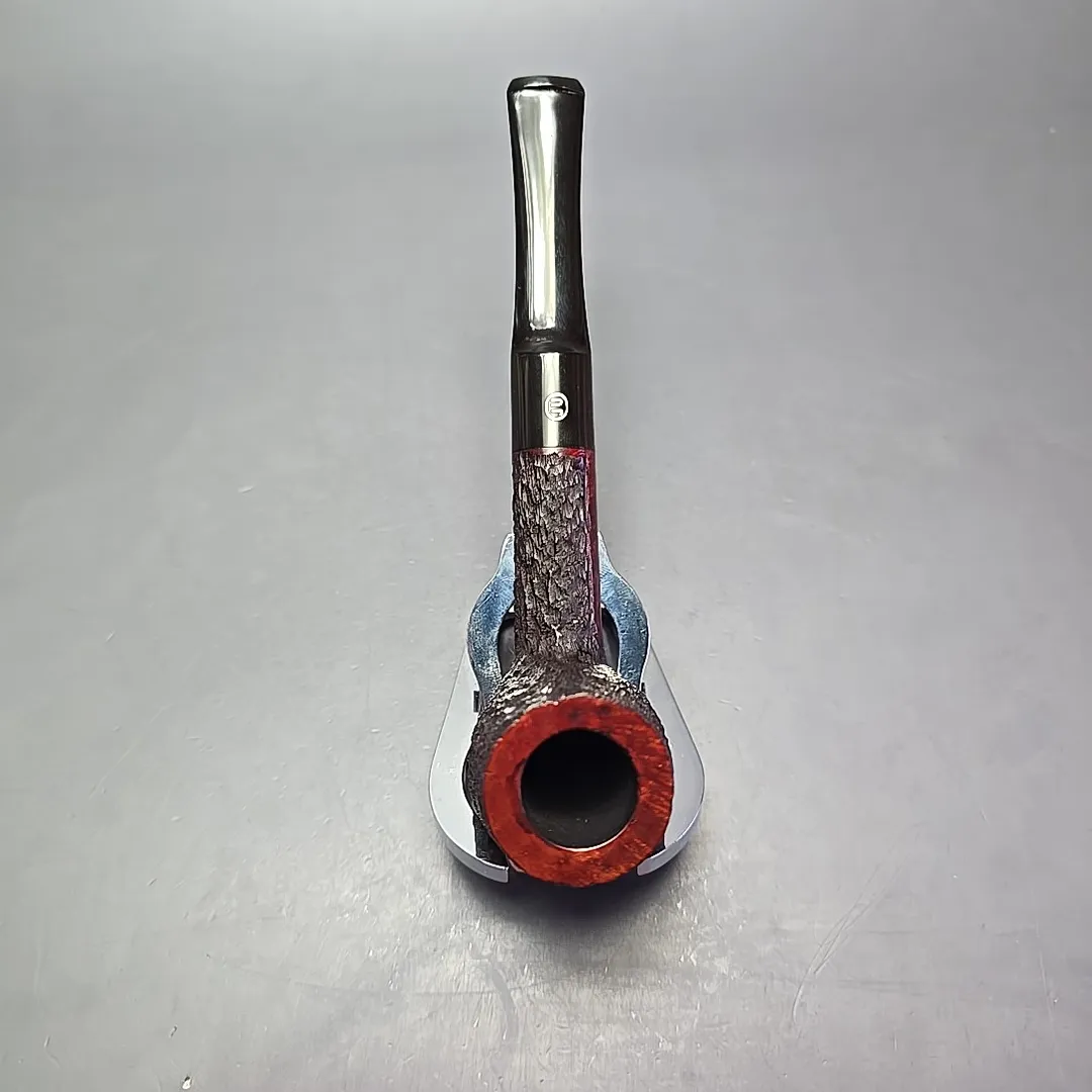 When James Upshall was founded, the company (Tilshead Pipe Co.) only sold smooth pipes. But, in the later decades of the 20th century, a strong case was being made by other English workshops, such as Ashton and Ferndown, that there was nothing stopping a sandblasted or a rusticated pipe from being handmade and high-grade—though in the case of the latter, this was something the Italians had known for even longer. The first rusticated James Upshall pipes were introduced around 1987, per Ken Barnes, and were carved in a pebble-dash manner not unlike high-grade Italian pipes (using techniques purportedly learned from the Ser Jacopo workshop). Within a few years, however, the finish had changed and received a formal name, the “Bark.” James Upshall pipes were now rusticated in a more “English” manner, and were in fact curiously similar to Ferndown’s finish of the same name. Given that Les Wood and Barry Jones were good friends (and still are, last I checked), I have wondered if something of the Woods’ approach to finishing rubbed off on Jones.