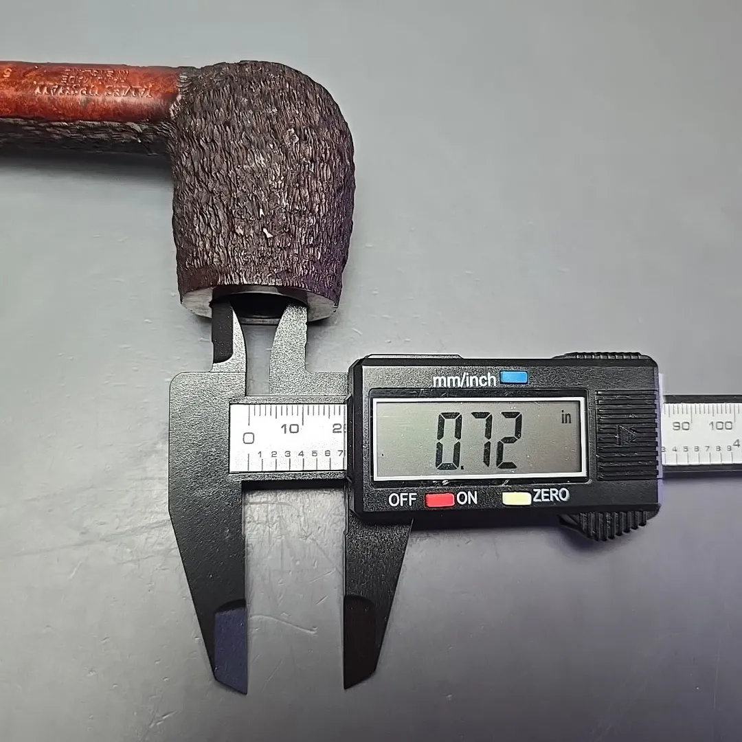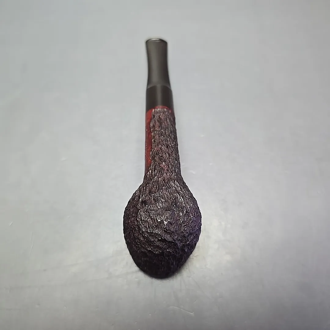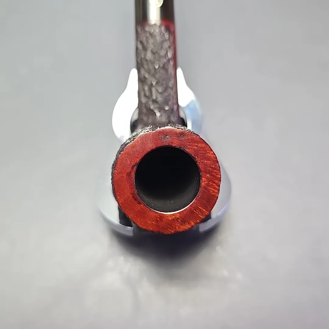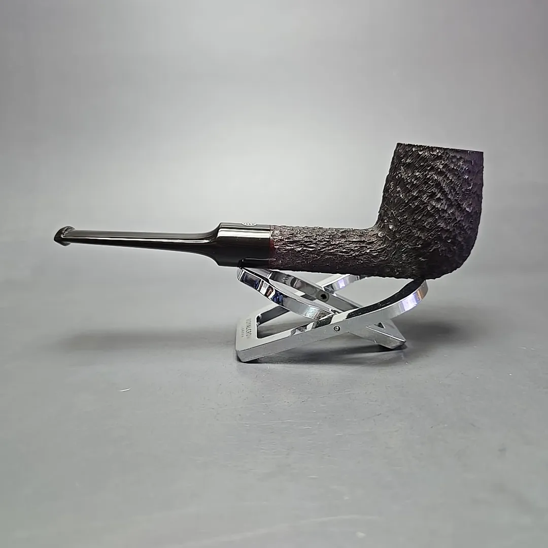 When James Upshall was founded, the company (Tilshead Pipe Co.) only sold smooth pipes. But, in the later decades of the 20th century, a strong case was being made by other English workshops, such as Ashton and Ferndown, that there was nothing stopping a sandblasted or a rusticated pipe from being handmade and high-grade—though in the case of the latter, this was something the Italians had known for even longer. The first rusticated James Upshall pipes were introduced around 1987, per Ken Barnes, and were carved in a pebble-dash manner not unlike high-grade Italian pipes (using techniques purportedly learned from the Ser Jacopo workshop). Within a few years, however, the finish had changed and received a formal name, the “Bark.” James Upshall pipes were now rusticated in a more “English” manner, and were in fact curiously similar to Ferndown’s finish of the same name. Given that Les Wood and Barry Jones were good friends (and still are, last I checked), I have wondered if something of the Woods’ approach to finishing rubbed off on Jones.