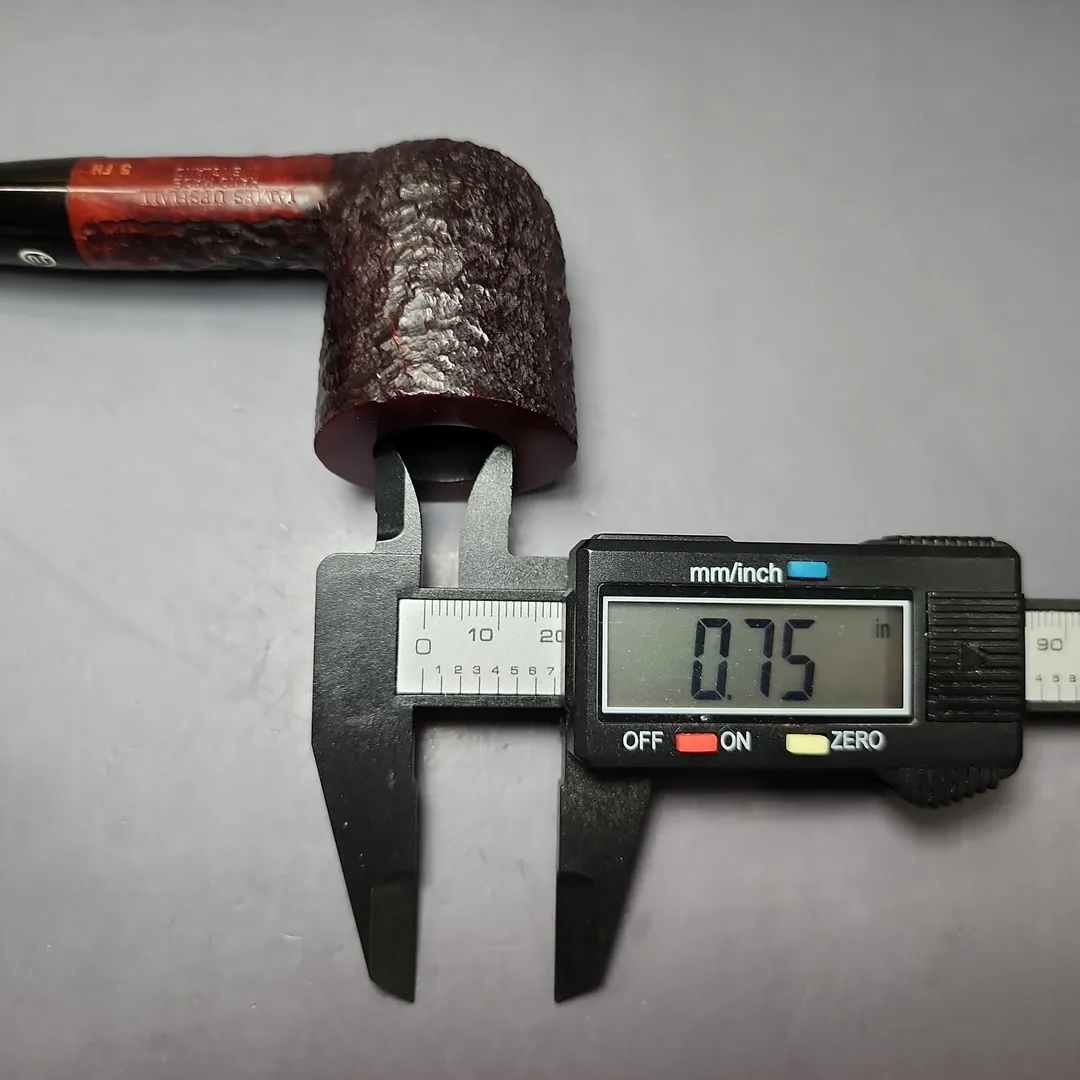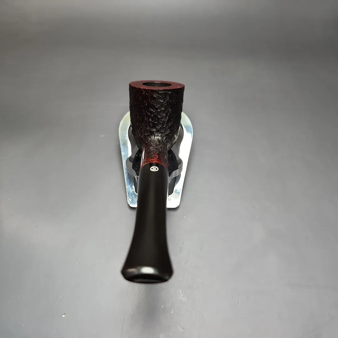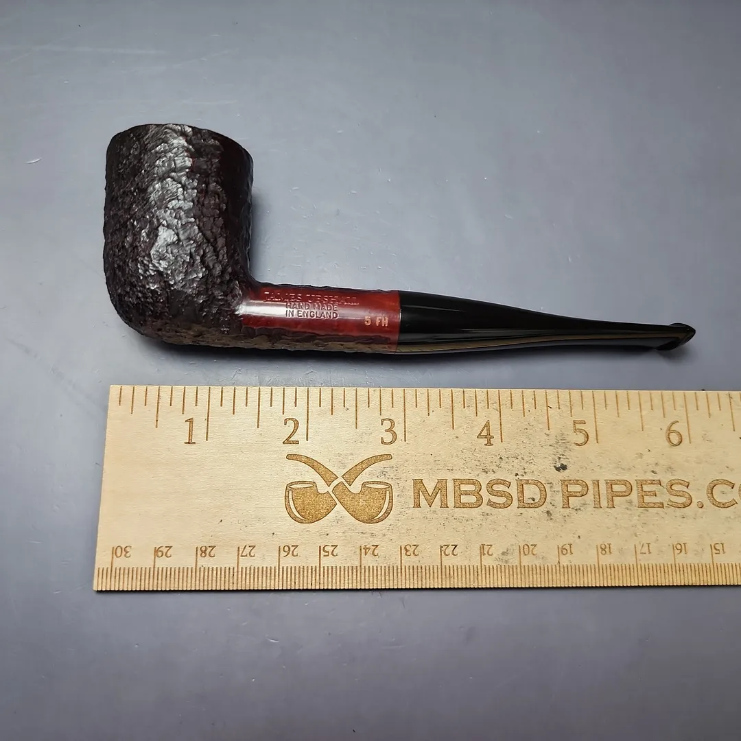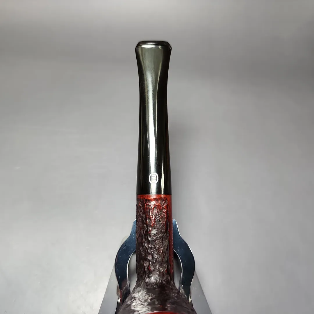 When James Upshall was founded, the company (Tilshead Pipe Co.) only sold smooth pipes. But, in the later decades of the 20th century, a strong case was being made by other English workshops, such as Ashton and Ferndown, that there was nothing stopping a sandblasted or a rusticated pipe from being handmade and high-grade—though in the case of the latter, this was something the Italians had known for even longer. The James Upshall Bark finish followed in this vein, and was often curiously similar to Ferndown’s finish of the same name. Given that Les Wood and Barry Jones were good friends (and still are, last I checked), I have wondered if something of the Woods’ approach to finishing rubbed off on Jones. Shaping, on the other hand, was something Jones had his own approach to, with this one being much more reminiscent of the Dublin shapes he cut his teeth on working under Reuben Charatan.