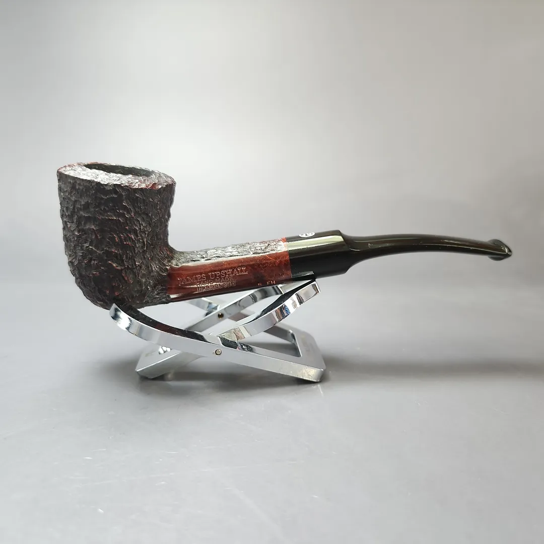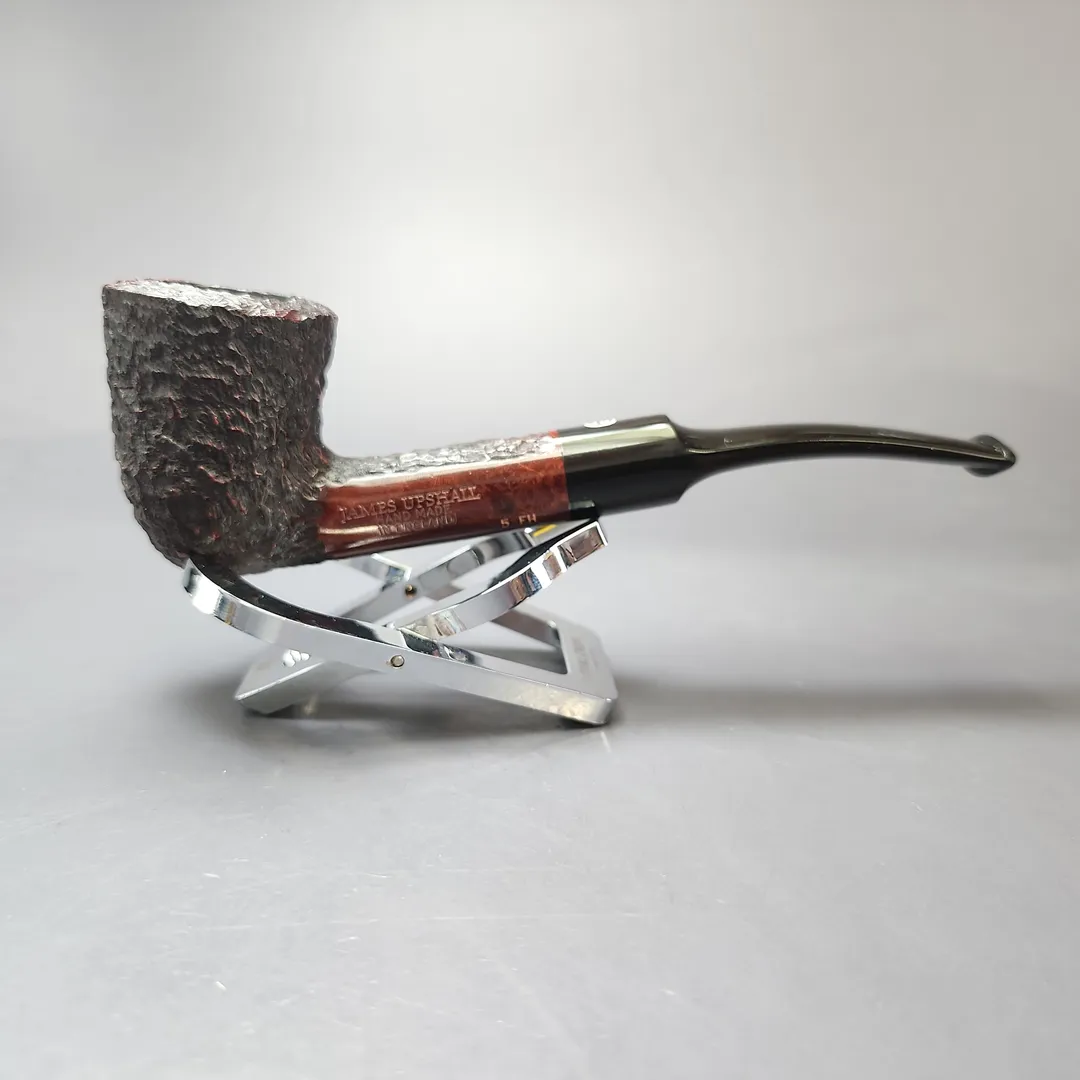 When James Upshall was founded, the company (Tilshead Pipe Co.) only sold smooth pipes. But, in the later decades of the 20th century, a strong case was being made by other English workshops, such as Ashton and Ferndown, that there was nothing stopping a sandblasted or a rusticated pipe from being handmade and high-grade—though in the case of the latter, this was something the Italians had known for even longer. The first rusticated James Upshall pipes were introduced around 1987, per Ken Barnes, and were carved in a pebble-dash manner not unlike high-grade Italian pipes (using techniques purportedly learned from the Ser Jacopo workshop). Within a few years, however, the finish had changed and received a formal name, the “Bark.” James Upshall pipes were now rusticated in a more “English” manner, and were in fact curiously similar to Ferndown’s finish of the same name. Given that Les Wood and Barry Jones were good friends (and still are, last I checked), I have wondered if something of the Woods’ approach to finishing rubbed off on Jones.