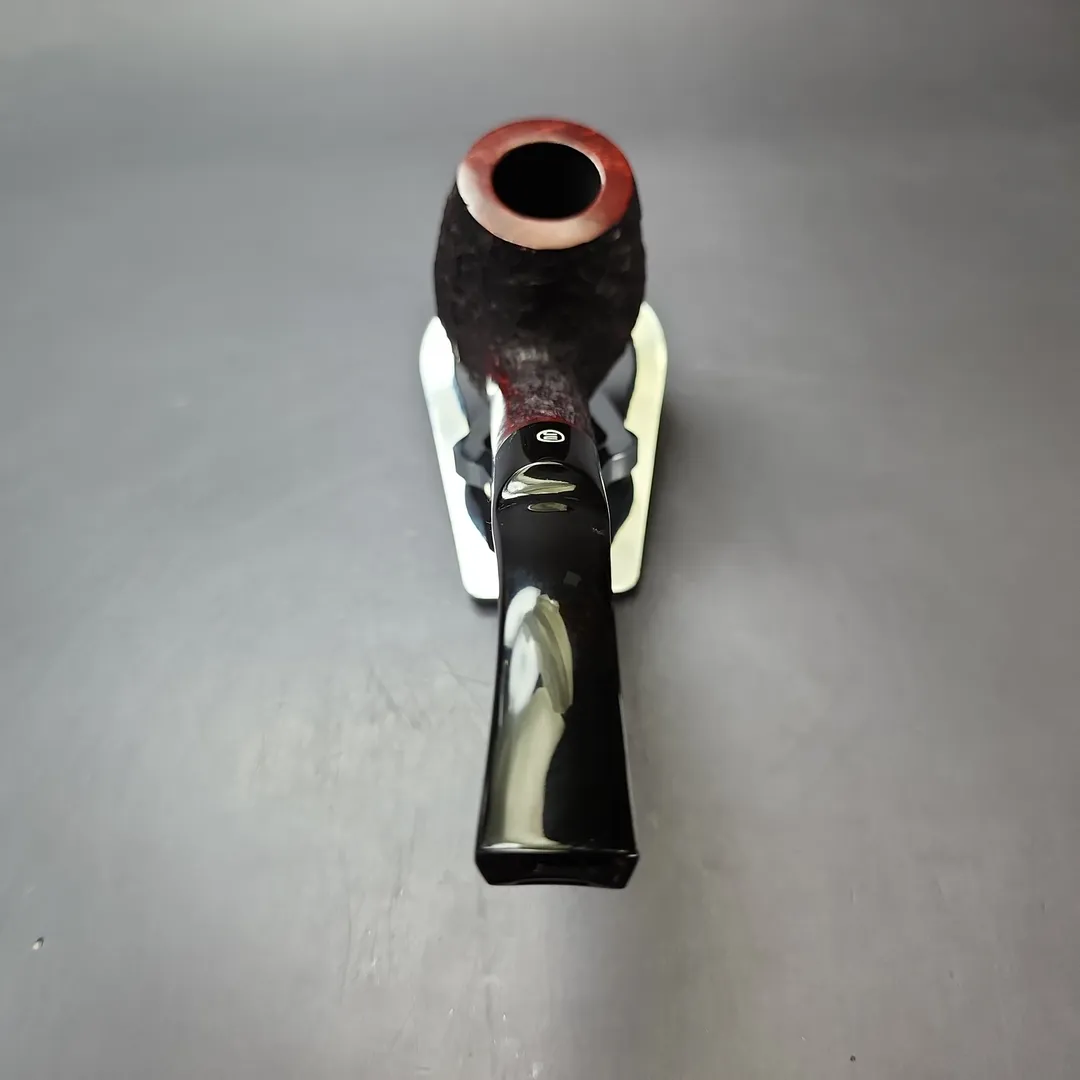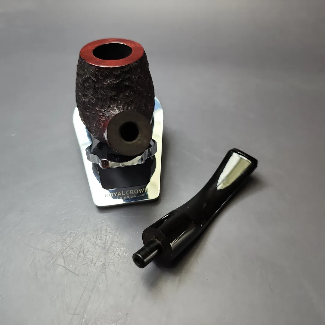 When James Upshall was founded, the company (Tilshead Pipe Co.) only sold smooth pipes. But, in the later decades of the 20th century, a strong case was being made by other English workshops, such as Ashton and Ferndown, that there was nothing stopping a sandblasted or a rusticated pipe from being handmade and high-grade—though in the case of the latter, this was something the Italians had known for even longer. The first rusticated James Upshall pipes were introduced around 1987, per Ken Barnes, and were carved in a pebble-dash manner not unlike high-grade Italian pipes (using techniques purportedly learned from the Ser Jacopo workshop). Within a few years, however, the finish had changed and received a formal name, the “Bark.” James Upshall pipes were now rusticated in a more “English” manner, and were in fact curiously similar to Ferndown’s finish of the same name. Given that Les Wood and Barry Jones were good friends (and still are, last I checked), I have wondered if something of the Woods’ approach to finishing rubbed off on Jones.