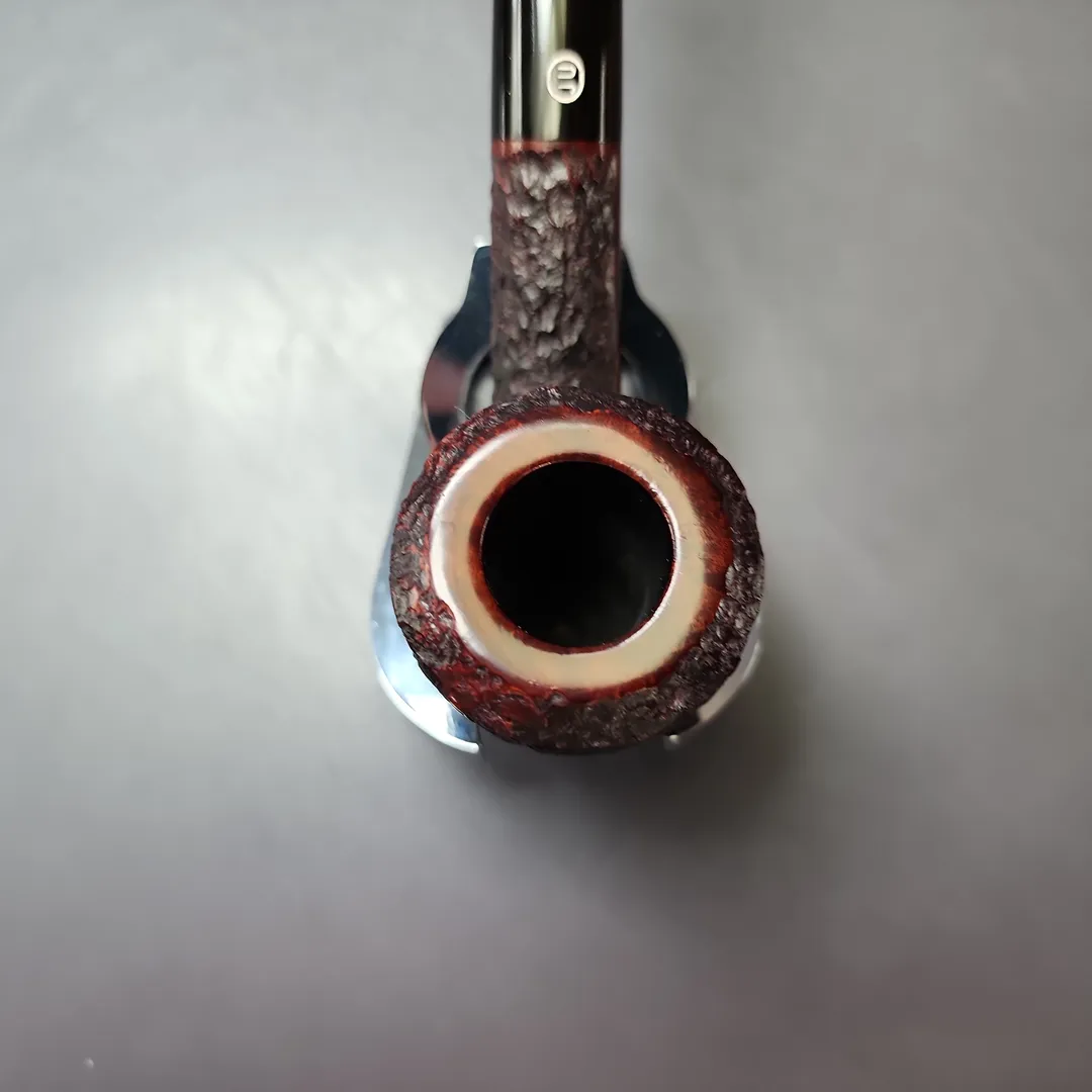 When James Upshall was founded, the company (Tilshead Pipe Co.) only sold smooth pipes. But, in the later decades of the 20th century, a strong case was being made by other English workshops, such as Ashton and Ferndown, that there was nothing stopping a sandblasted or a rusticated pipe from being handmade and high-grade—though in the case of the latter, this was something the Italians had known for even longer. The first rusticated James Upshall pipes were introduced around 1987, per Ken Barnes, and were carved in a pebble-dash manner not unlike high-grade Italian pipes (using techniques purportedly learned from the Ser Jacopo workshop). Within a few years, however, the finish had changed and received a formal name, the “Bark.” James Upshall pipes were now rusticated in a more “English” manner, and were in fact curiously similar to Ferndown’s finish of the same name. Given that Les Wood and Barry Jones were good friends (and still are, last I checked), I have wondered if something of the Woods’ approach to finishing rubbed off on Jones.