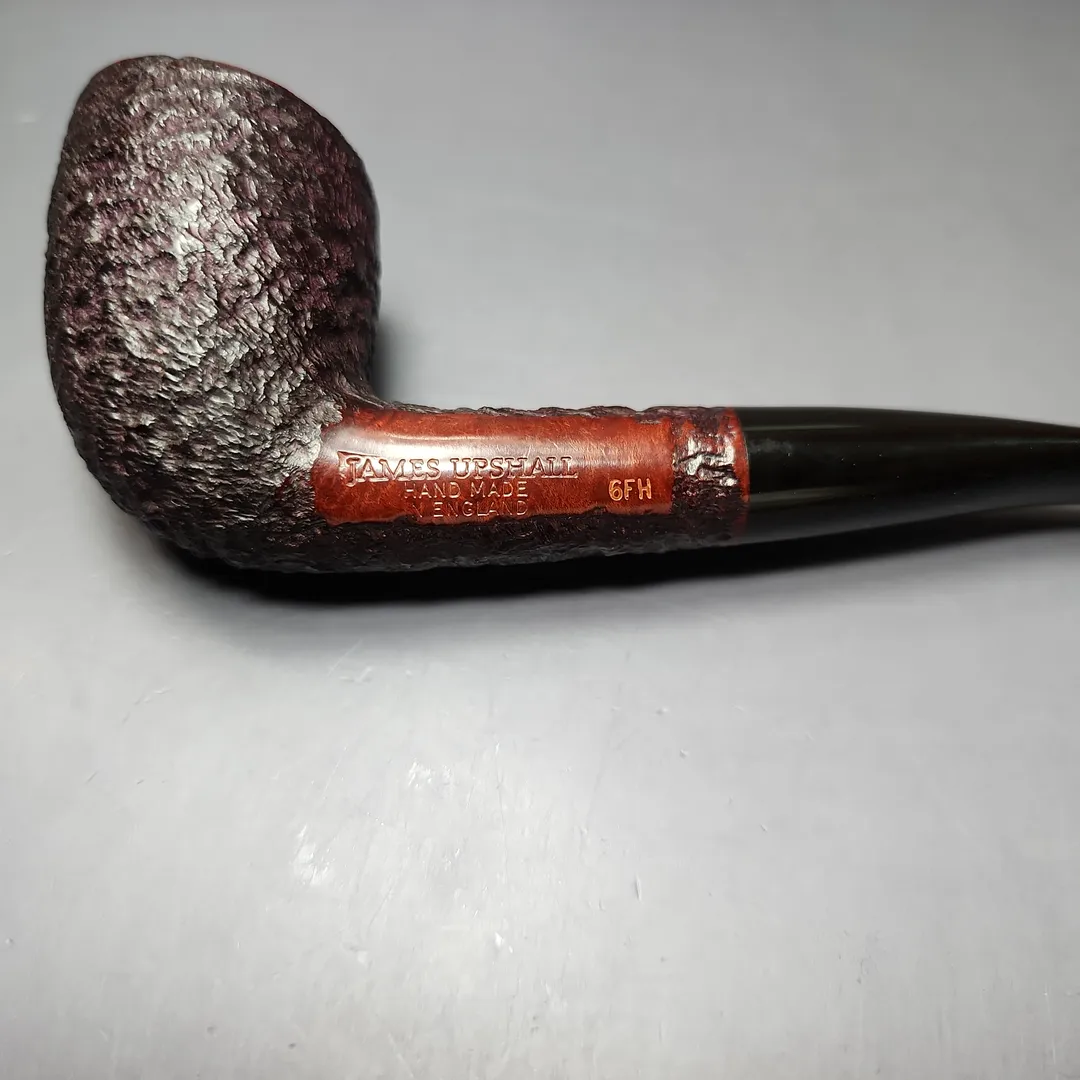 When James Upshall was founded, the company (Tilshead Pipe Co.) only sold smooth pipes. But, in the later decades of the 20th century, a strong case was being made by other English workshops, such as Ashton and Ferndown, that there was nothing stopping a sandblasted or a rusticated pipe from being handmade and high-grade—though in the case of the latter, this was something the Italians had known for even longer. The James Upshall Bark finish followed in this vein, and was often curiously similar to Ferndown’s finish of the same name. Given that Les Wood and Barry Jones were good friends (and still are, last I checked), I have wondered if something of the Woods’ approach to finishing rubbed off on Jones.