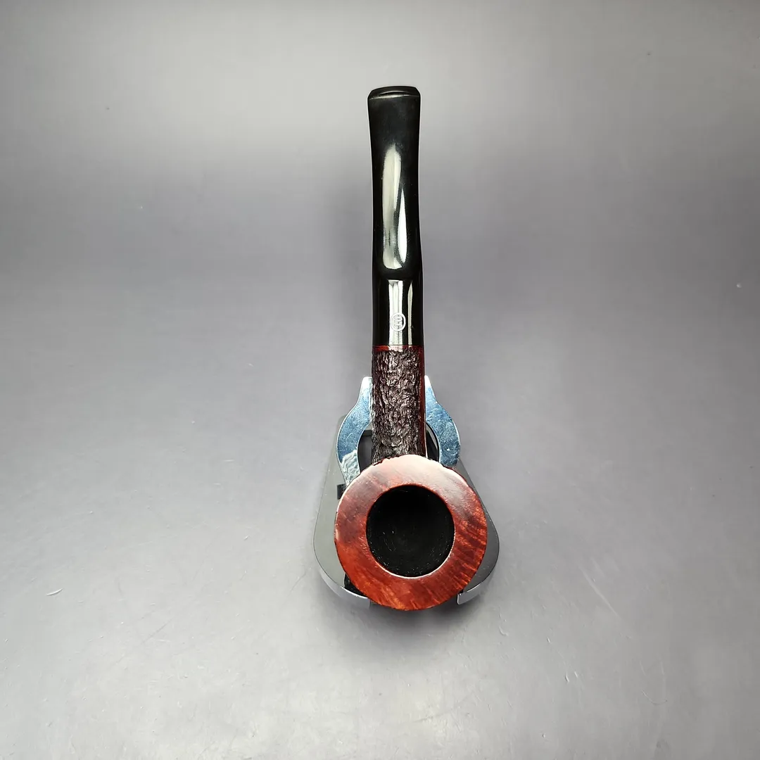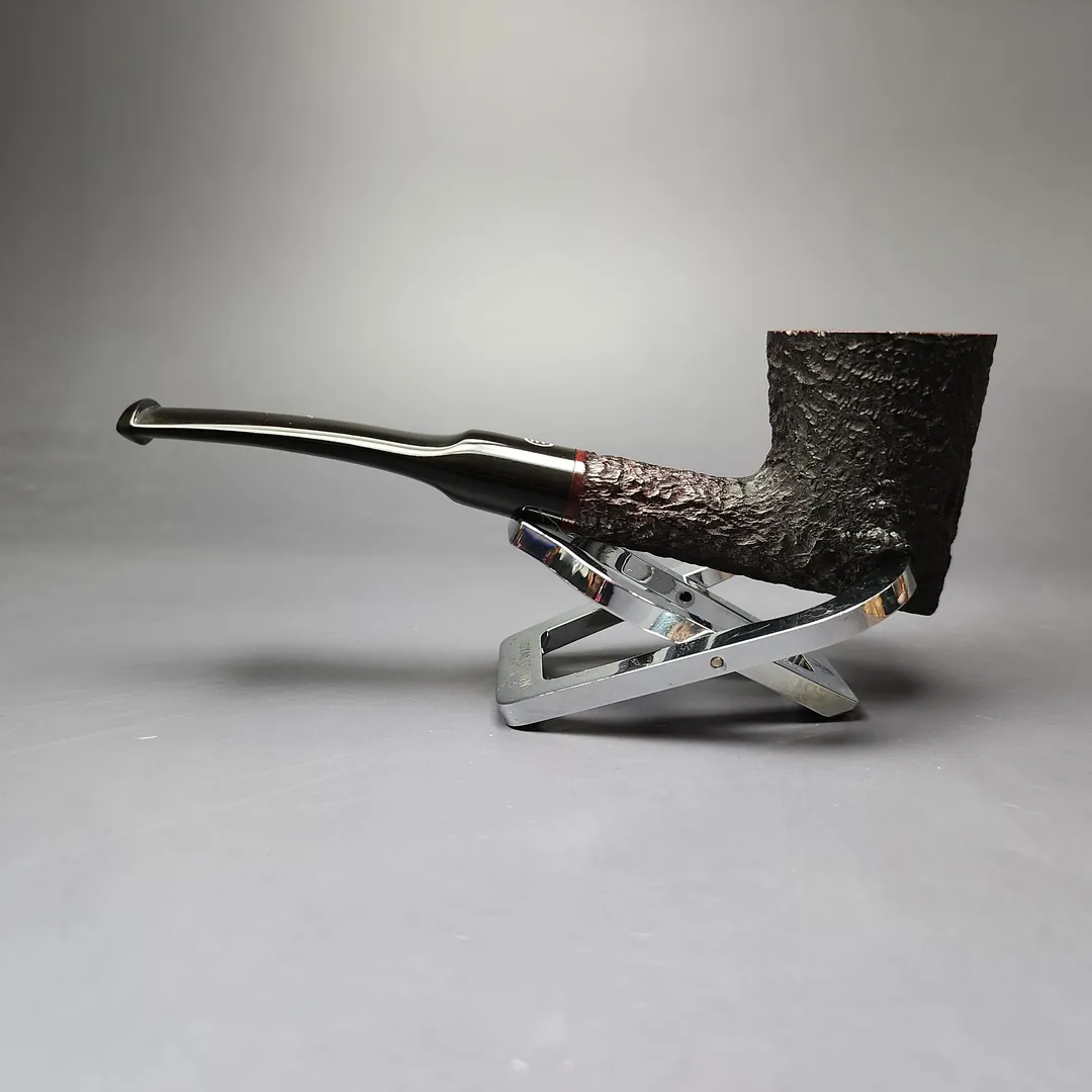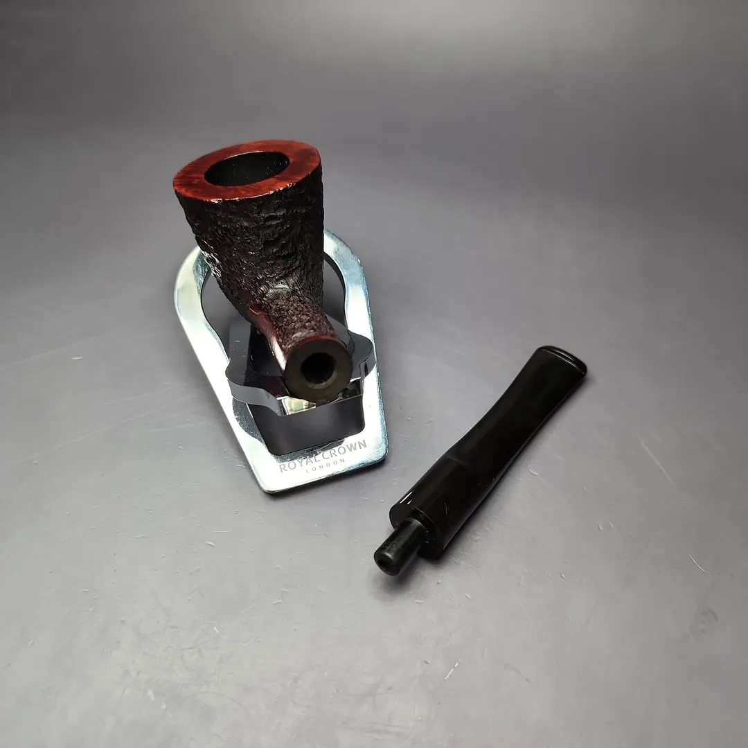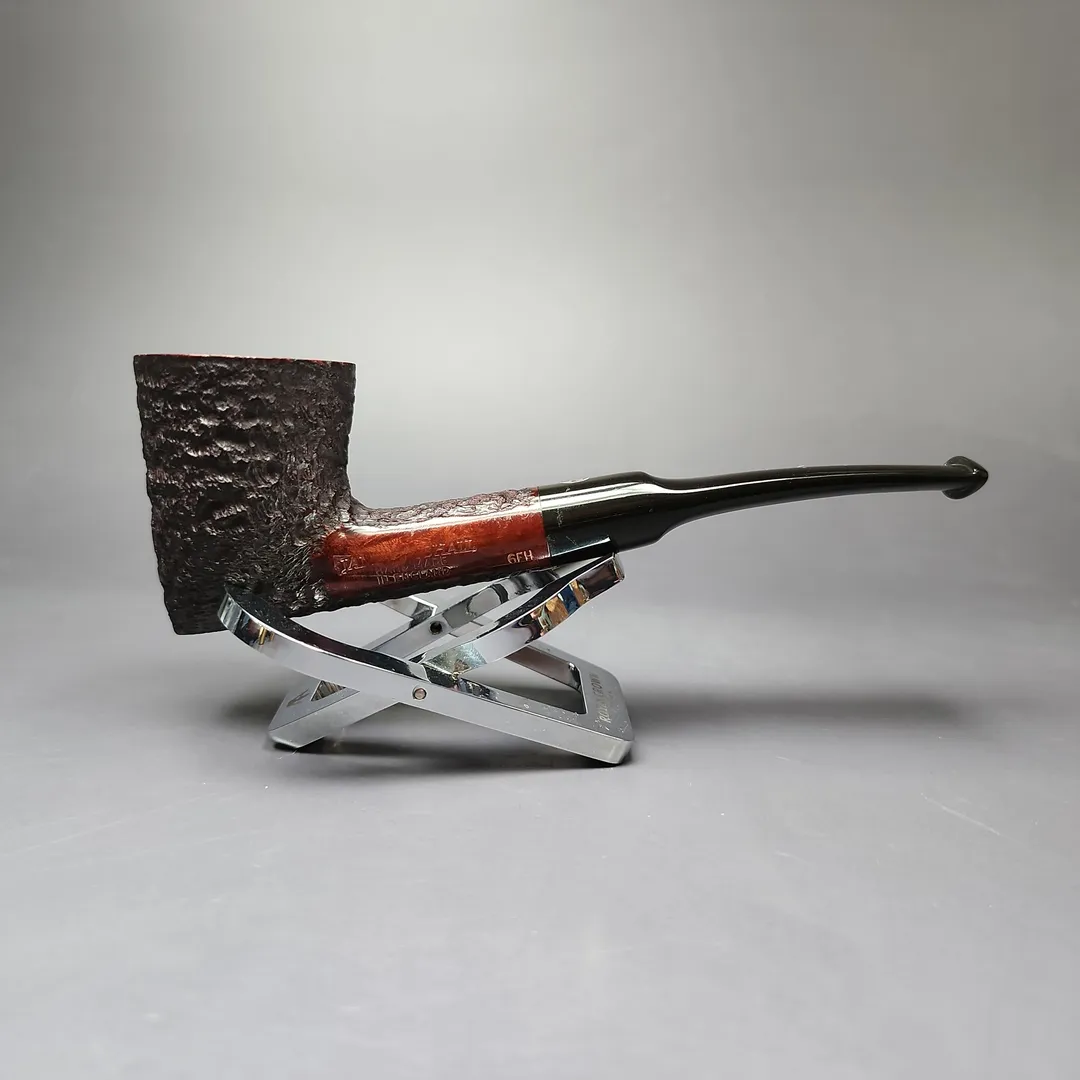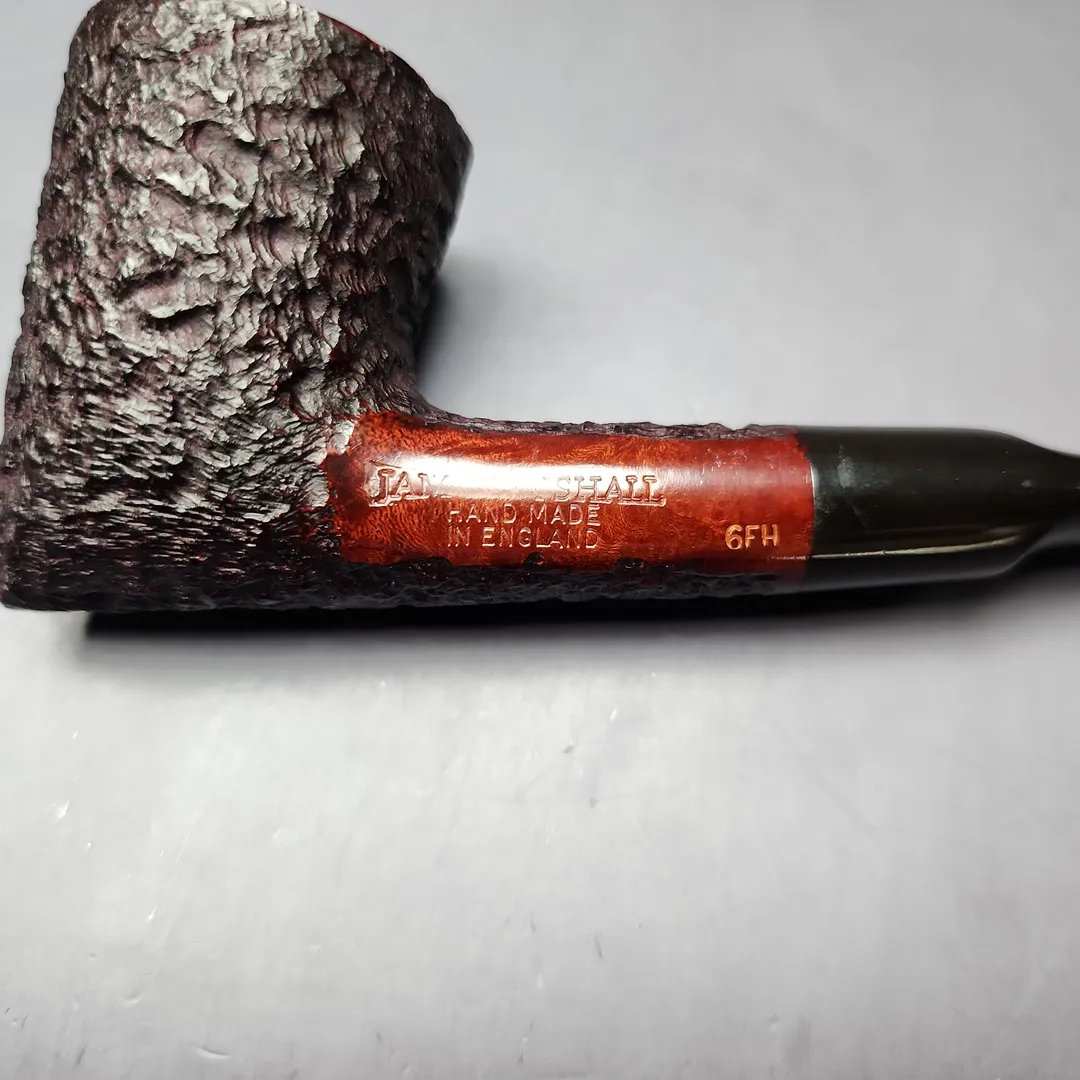 When James Upshall was founded, the company (Tilshead Pipe Co.) only sold smooth pipes. But, in the later decades of the 20th century, a strong case was being made by other English workshops, such as Ashton and Ferndown, that there was nothing stopping a sandblasted or a rusticated pipe from being handmade and high-grade—though in the case of the latter, this was something the Italians had known for even longer. The James Upshall Bark finish followed in this vein, and was often curiously similar to Ferndown’s finish of the same name. Given that Les Wood and Barry Jones were good friends (and still are, last I checked), I have wondered if something of the Woods’ approach to finishing rubbed off on Jones. The basic shape, on the other hand, is one of the classic (and, in this instance, wonderfully lightweight) English skater, a design whose principal inspiration will likely have been the many Charatan renditions Barry turned way back when.