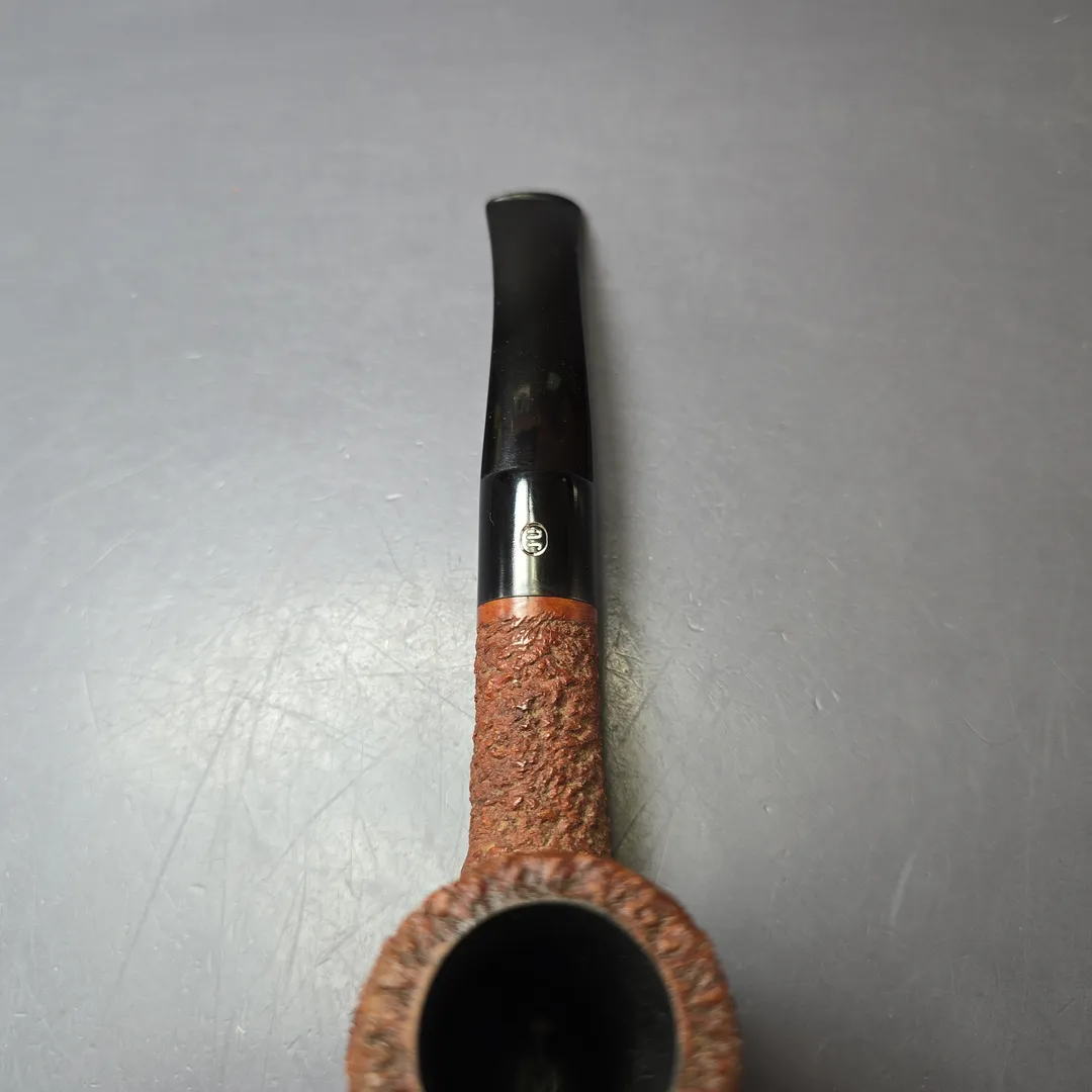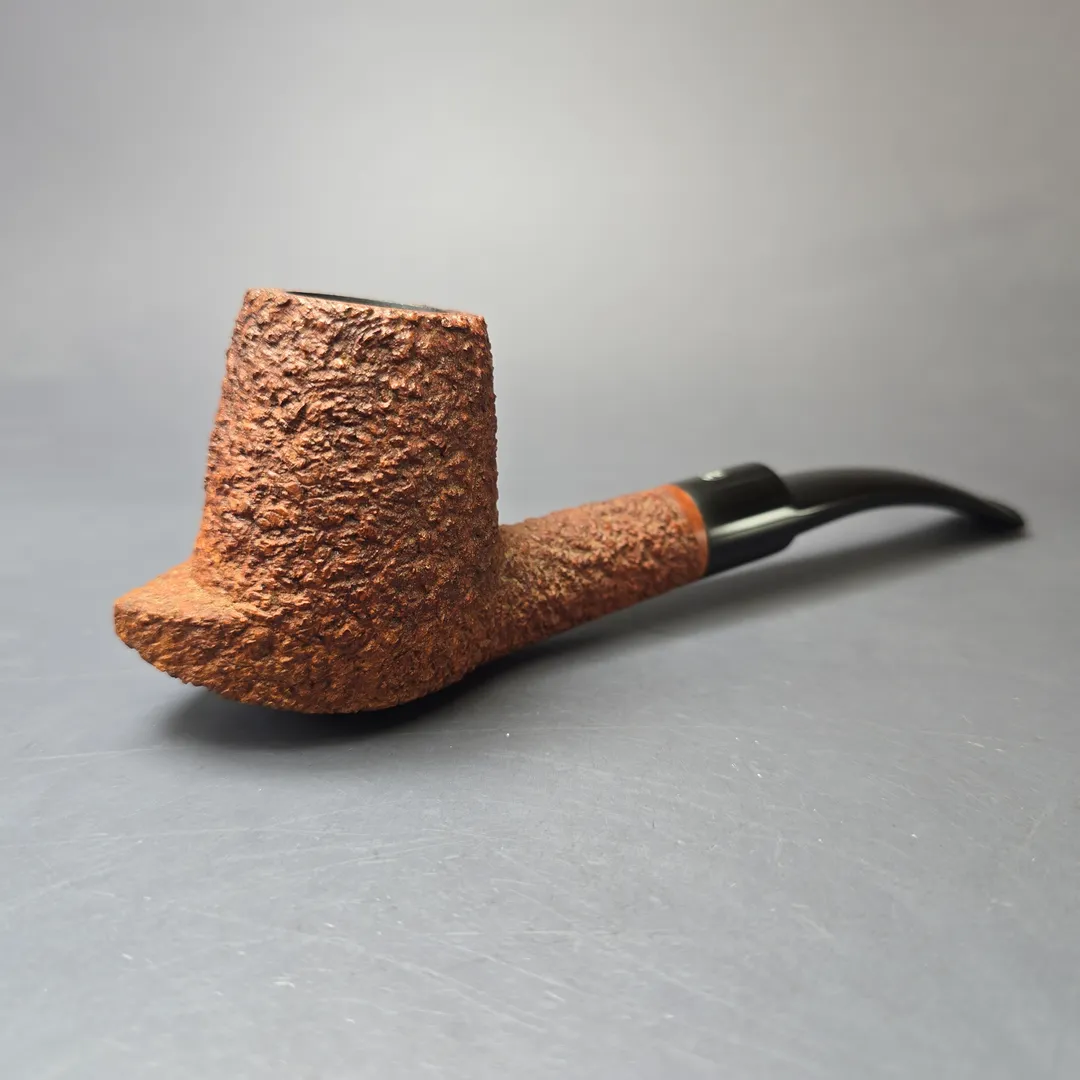 The first interesting thing about it is that it is a rusticated pipe. If you’ve been following MBSD Pipes listings, you’ll have seen quite a few rusticated James Upshalls, except most of them were not rusticated like this. Most of the rusticated pipes in the history of the Tilshead workshop wore finishes that were more like the Ferndown Bark series and, curiously enough, the James Upshall version was also called “Bark.” Whether Barry Jones was influenced by his good friend, Les Wood, in creating that finish is something I have speculated on elsewhere. But there was another “Bark” before the Ferndown-esque one, which can be seen here. The origins of this rustication are more concretely known, thanks to recollections from Ken Barnes made a few years before his untimely passing. Per Barnes, while the Tilshead Pipe Co. only made smooth pipes during its first decade, around 1987 the decision was made to branch out and manufacture a small number of rusticated pipes as well. In this instance, the inspiration for the type of rustication used was not English, but Italian, and it was the Italians themselves who shared the finishing techniques involved with Barnes and Jones (in terms of which Italians, Barnes vaguely remembered a connection to Ser Jacopo). So, in the grand scheme of things, this is an early rusticated James Upshall pipe, possibly from the end of the 1980s, given its minimal stamping.
