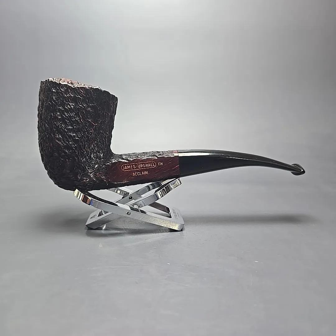 James Upshall was, along with Ferndown and Ashton, part of a new wave of British hand-made, high-grade pipes in the late 20th century, with their founders largely coming from previous positions in the factories of companies such as Dunhill and Charatan. James Upshall was founded in 1978 by Barry Jones and Ken Barnes, both of whom had previously worked for Charatan and who had worked their way up to being carvers Charatan’s higher-end, non-standard shapes. Jones and Barnes’ pipes quickly grew to being something of a status symbol, and were enjoyed by King Hussein of Jordan, Anwar Sadat, Bing Crosby, Yul Brynner, Robert Wagner and Tom Selleck. The company also made house-brand pipes for Astleys in London, along with many of the other major makes of the era. James Upshall pipes are no longer made, but their reputation as some of the finest hand-turned British pipes continues to endure.