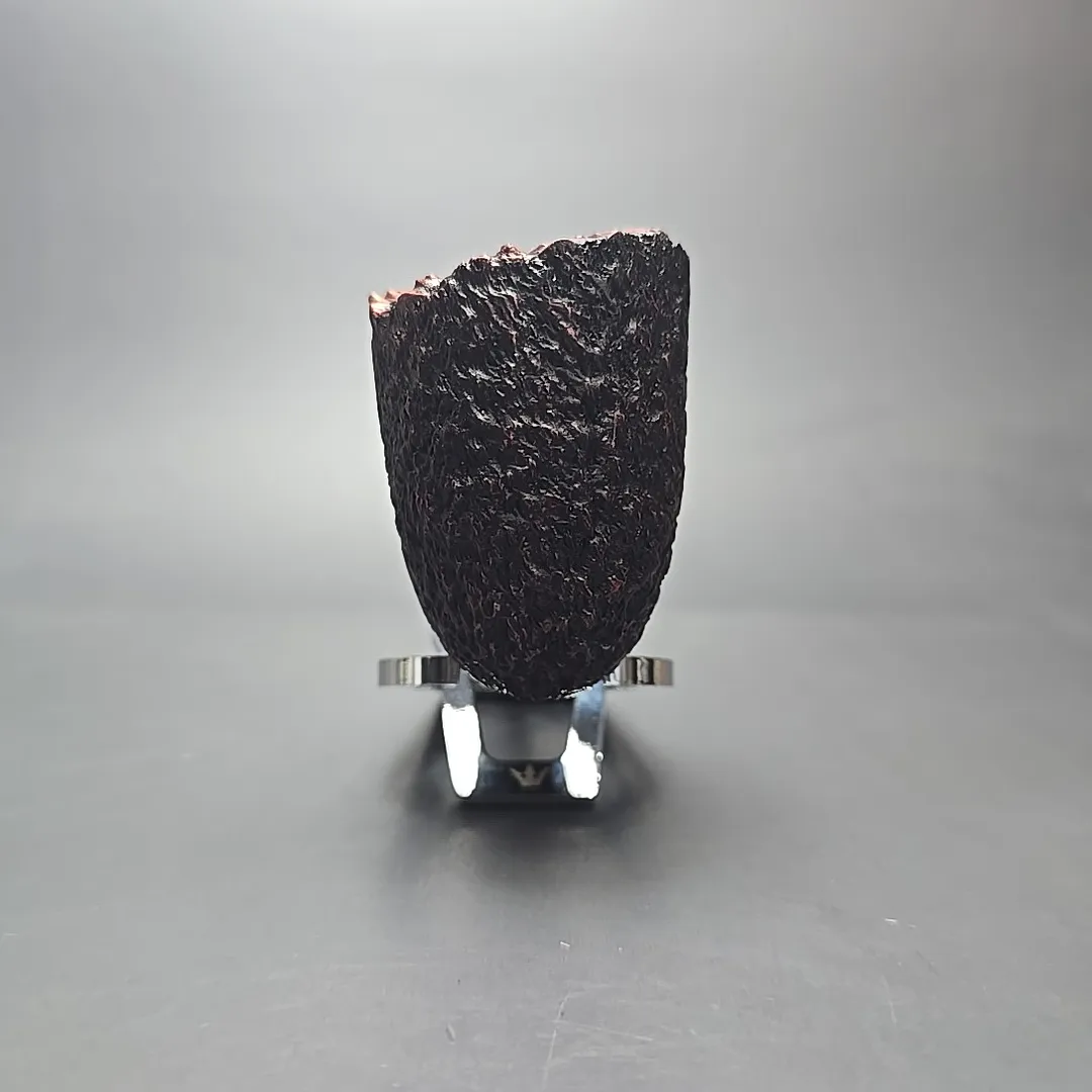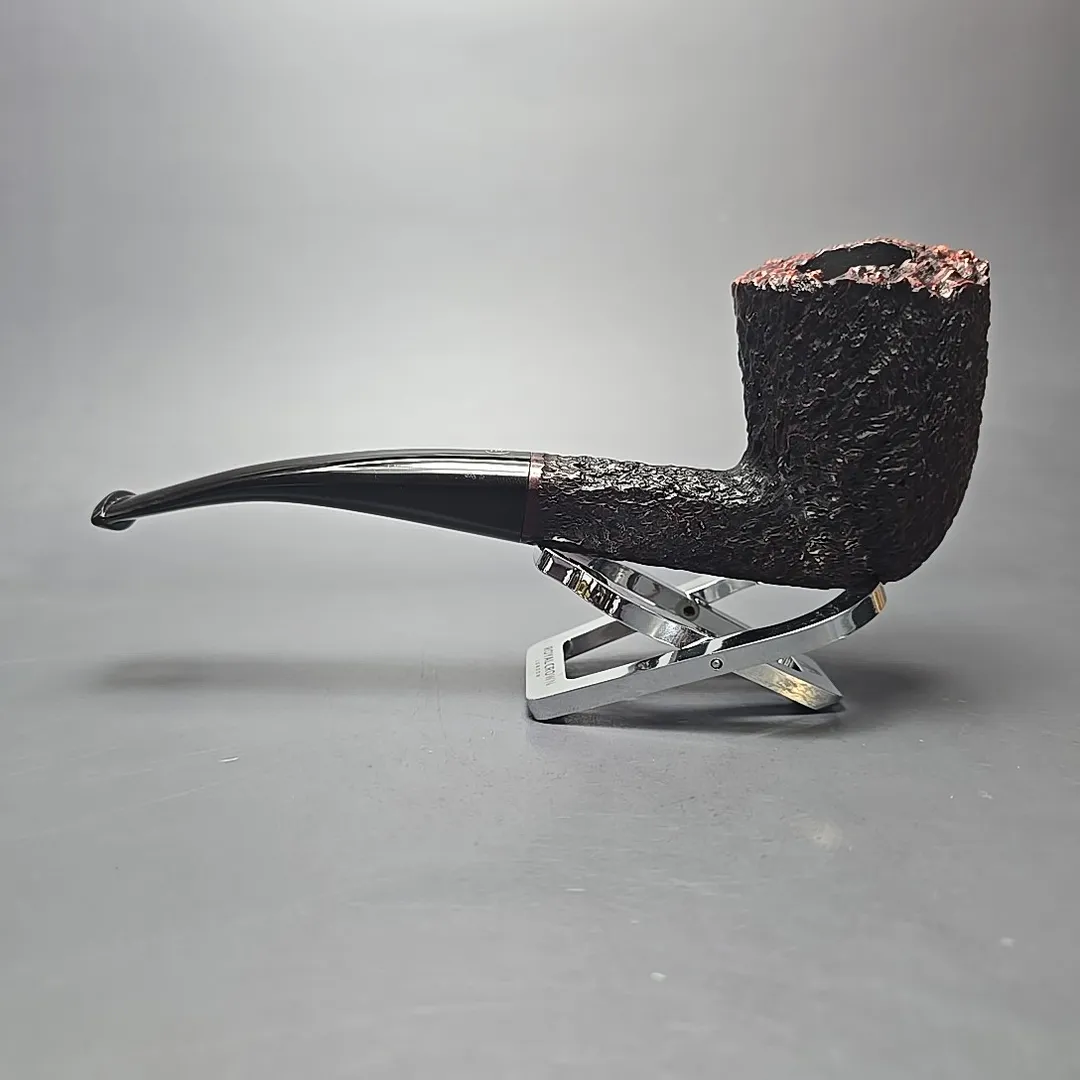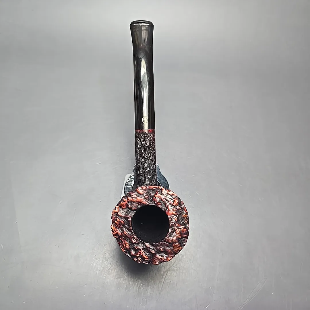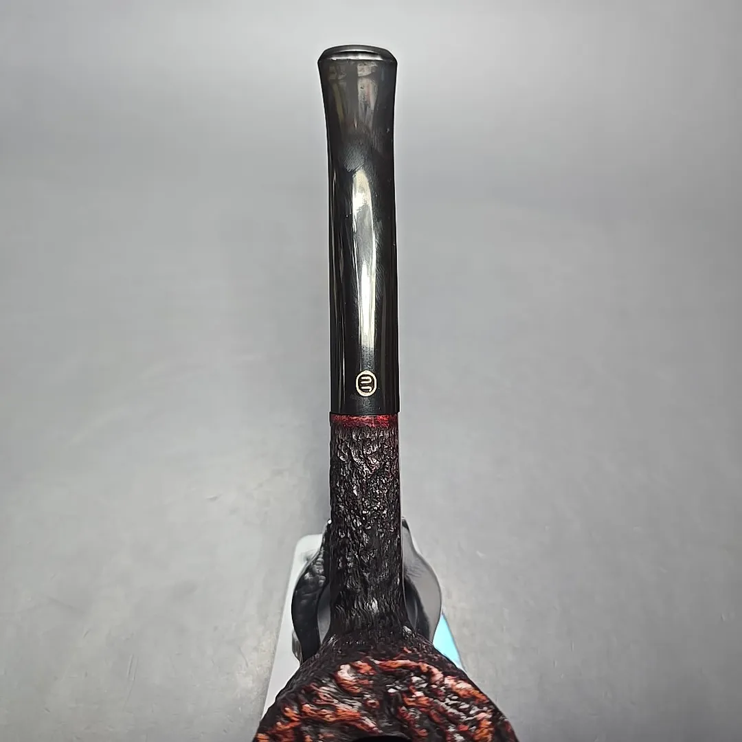 Each entry in the Empire Series corresponded to one of the grades or finishes in the Tilshead workshop’s typical output, with the Acclaim being a super-sized Bark (though some sandblasted pipes also fell under the same title). The Bark itself is quite interesting, having been conceived during the 1980s after Ken Barnes and Barry Jones visited the high-grade workshops of Italy and took a liking to their rusticated pipes. Upon returning, the pair started making a few pipes carved in the quintessentially Italian pebble-dash style from time to time. In time, however, the James Upshall approach to rustication moved closer toward a more “English” style, as seen here. The “Bark” thus became a micro-rusticated, red-tinted burgundy finish, not unlike that of Ferndown. Given that both Ken Barnes and Barry Jones were good friends with Les Wood, who was one half of the Ferndown duo, I have wondered in the past whether Les might have been something of an influence in that regard.