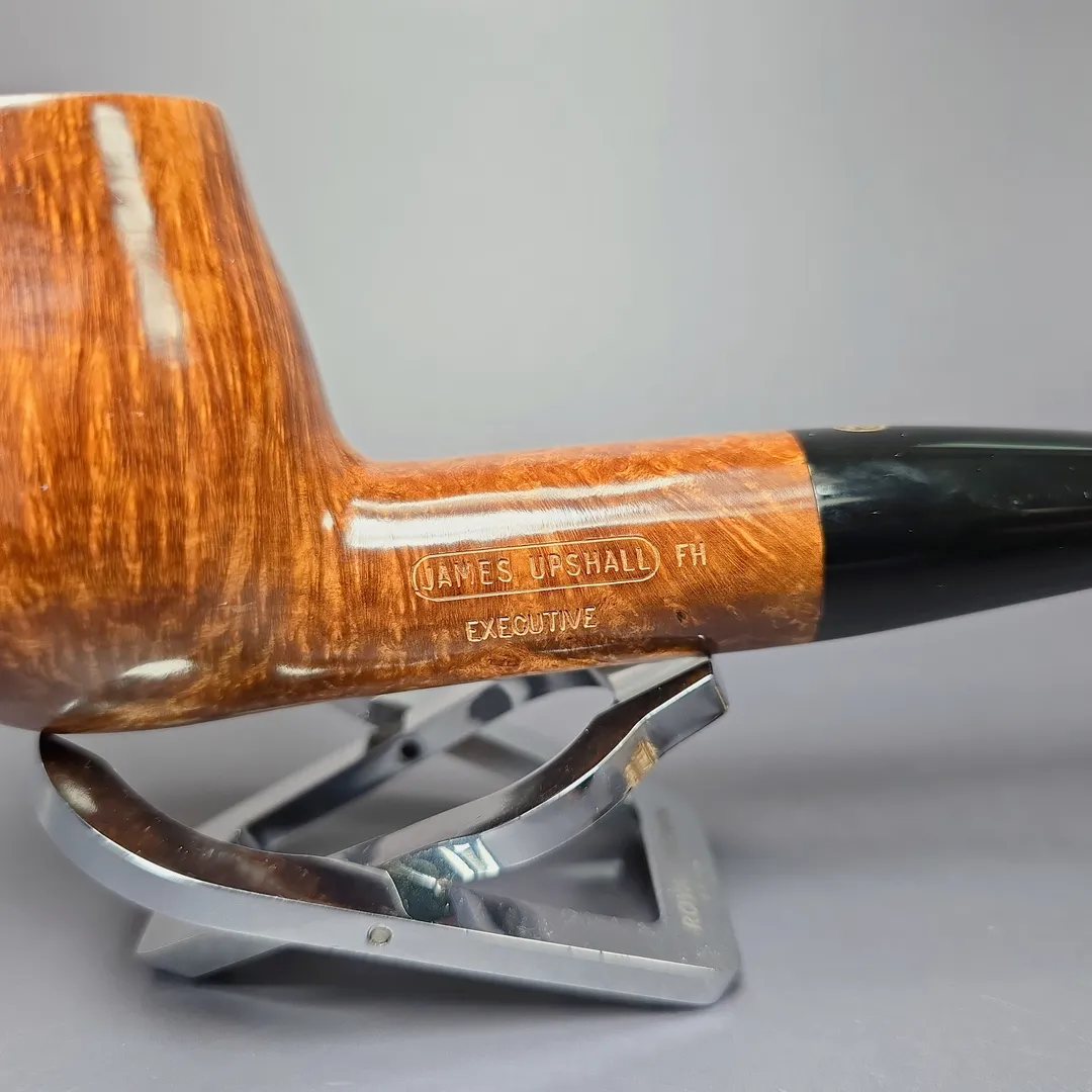 James Upshall was, along with Ferndown and Ashton, part of a new wave of British hand-made, high-grade pipes in the late 20th century, with their founders largely coming from previous positions in the factories of companies such as Dunhill and Charatan. James Upshall was founded in 1978 by Barry Jones and Ken Barnes, both of whom had previously worked for Charatan and who had worked their way up to being carvers Charatan’s higher-end, non-standard shapes. Jones and Barnes’ pipes quickly grew to being something of a status symbol, and were enjoyed by King Hussein of Jordan, Anwar Sadat, Bing Crosby, Yul Brynner, Robert Wagner and Tom Selleck. The company also made house-brand pipes for Astleys in London. Sadly, James Upshall pipes are no longer made, but their reputation as some of the finest hand-turned British pipes lives on.