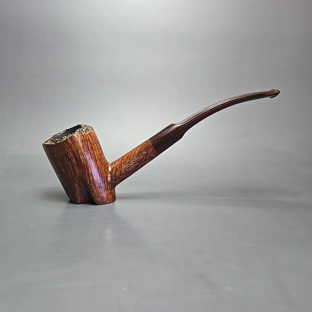James Upshall was, along with Ferndown and Ashton, part of a new wave of British hand-made, high-grade pipes in the late 20th century, with their founders largely coming from previous positions in the factories of companies such as Dunhill and Charatan. James Upshall was founded in 1978 by Barry Jones and Ken Barnes, both of whom had previously worked for Charatan and who had worked their way up to being carvers Charatan’s higher-end, non-standard shapes. Jones and Barnes’ pipes quickly grew to being something of a status symbol, and were enjoyed by King Hussein of Jordan, Anwar Sadat, Bing Crosby, Yul Brynner, Robert Wagner and Tom Selleck. The company also made house-brand pipes for Astleys in London. Sadly, James Upshall pipes are no longer made, but their reputation as some of the finest British handmade pipes lives on.