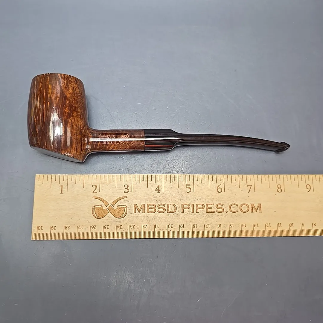 James Upshall was, along with Ferndown and Ashton, part of a new wave of British hand-made, high-grade pipes in the late 20th century, with their founders largely coming from previous positions in the factories of companies such as Dunhill and Charatan. James Upshall was founded in 1978 by Barry Jones and Ken Barnes, both of whom had previously worked for Charatan and who had worked their way up to being carvers Charatan’s higher-end, non-standard shapes. Jones and Barnes’ pipes quickly grew to being something of a status symbol, and were enjoyed by King Hussein of Jordan, Anwar Sadat, Bing Crosby, Yul Brynner, Robert Wagner and Tom Selleck. The company also made house-brand pipes for Astleys in London, along with many of the other major makes of the era. James Upshall pipes are no longer made, but their reputation as some of the finest hand-turned British pipes continues to endure.