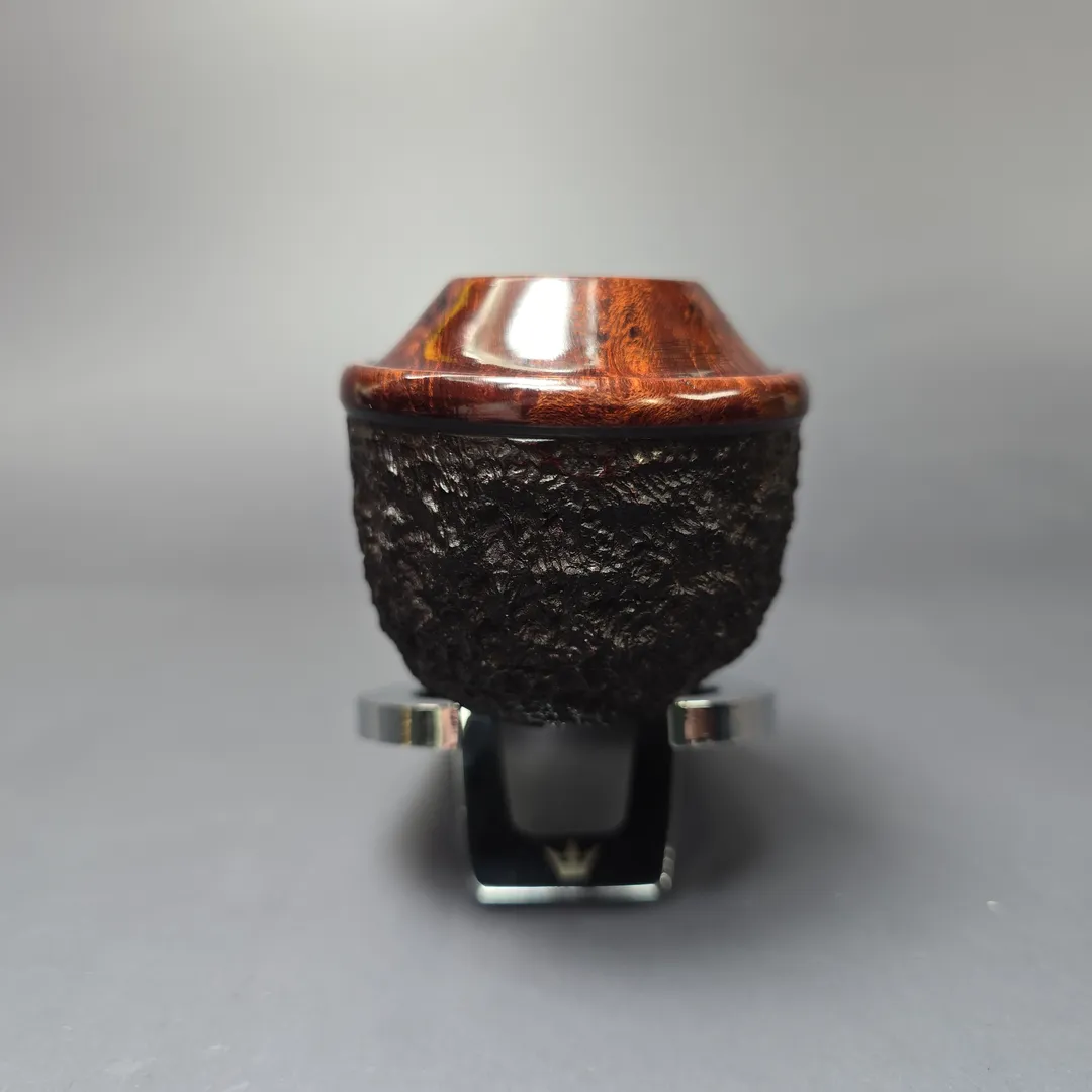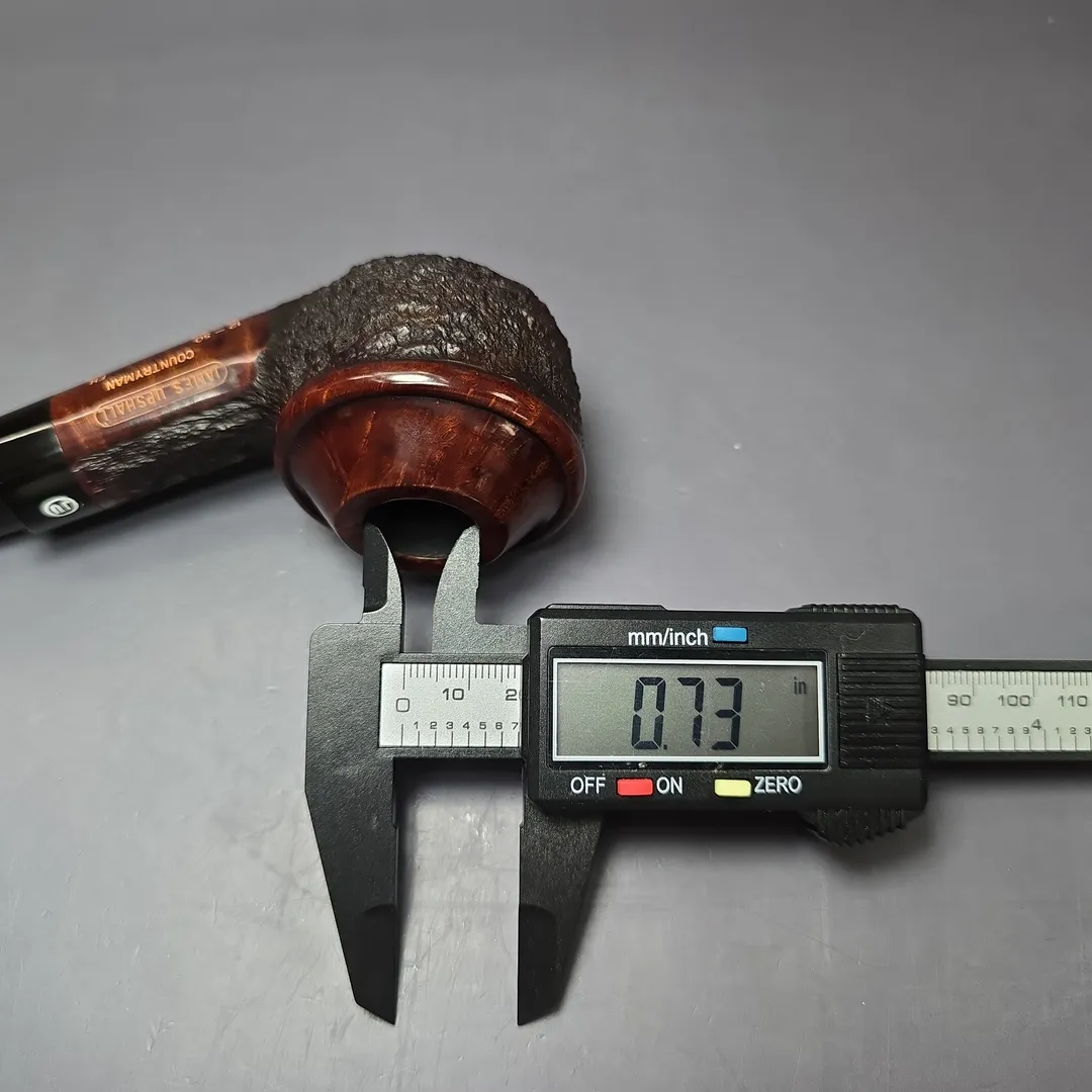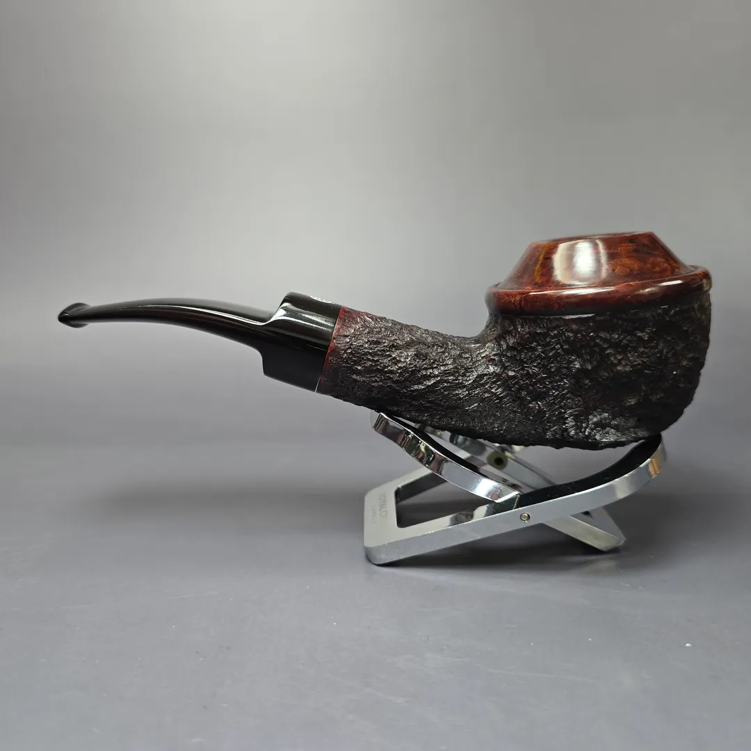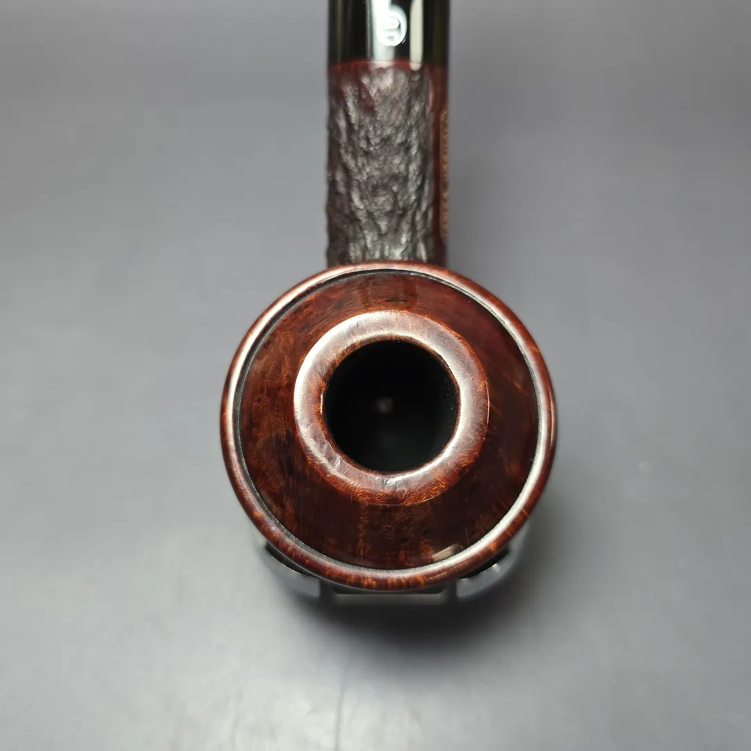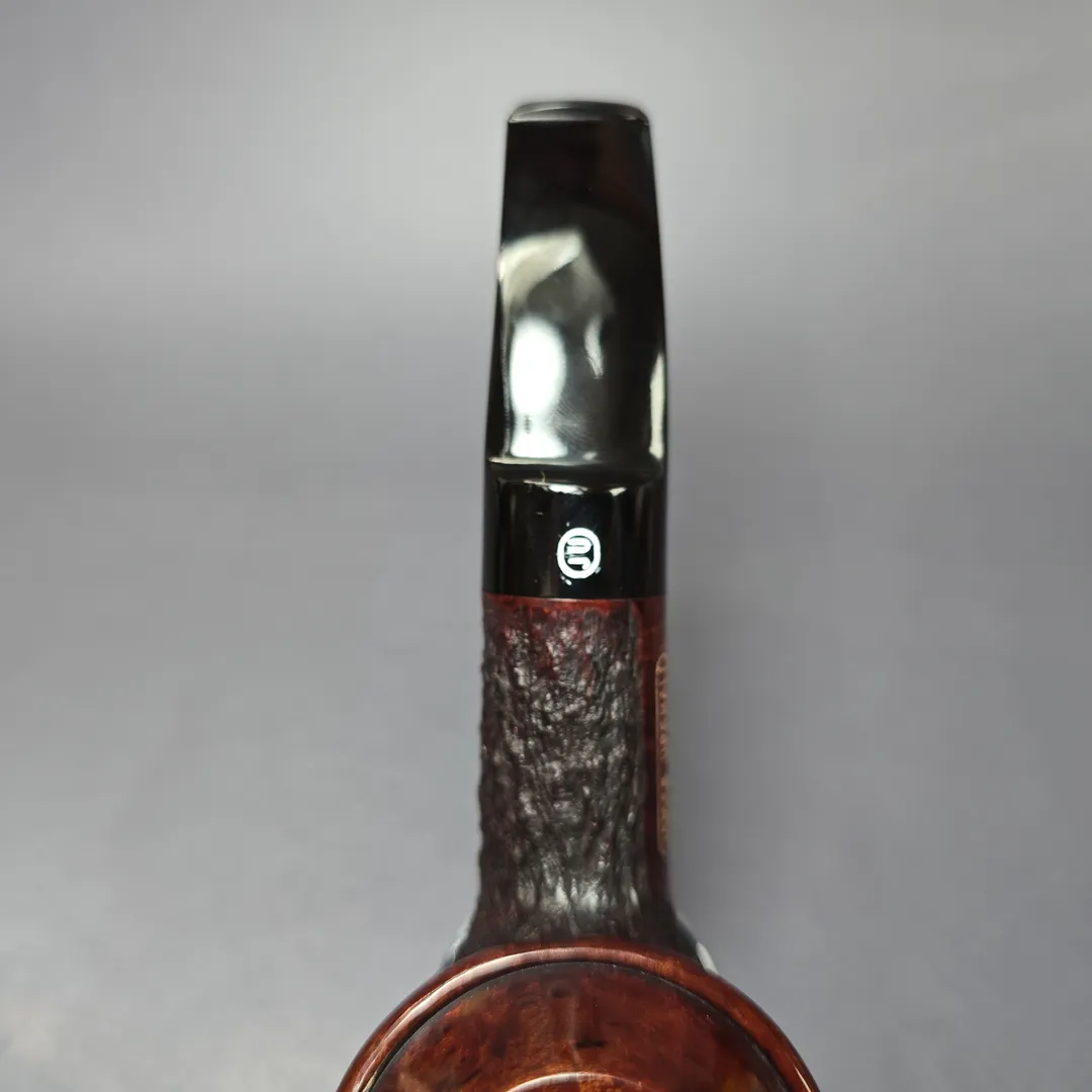 If you’re unfamiliar with English handmade pipes, this funny looking Rhodesian might be something of a novelty. In fact, it’s not really a Rhodesian at all. Its proper name is the “countryman,” due to the smooth portion of the rim looking like the kind of hat that would be worn in the English countryside. It’s a shape that was invented in England, in the Charatan freehand workshop during the 1960s, and more specifically it was invented by two of Charatan’s master freehand turners: Dan Tennison and Barry Jones. As with all good shapes, it took on a life of its own, with homages paid by various other English artisans, as well as many abroad (in fact, I’m sure I’ve even seen a Pibe Dan one before). This one was made by Barry Jones in the last years of James Upshall, as part of a limited edition run that never got around to being sold to the public. It is not clear just how many in the projected series were ultimately made.