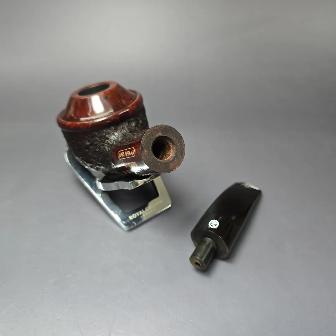 James Upshall was, along with Ferndown and Ashton, part of a new wave of British hand-made, high-grade pipes in the late 20th century, with their founders largely coming from previous positions in the factories of companies such as Dunhill and Charatan. James Upshall was founded in 1978 by Barry Jones and Ken Barnes, both of whom had previously worked for Charatan and who had worked their way up to being carvers Charatan’s higher-end, non-standard shapes. Jones and Barnes’ pipes quickly grew to being something of a status symbol, and were enjoyed by King Hussein of Jordan, Anwar Sadat, Bing Crosby, Yul Brynner, Robert Wagner and Tom Selleck. The company also made house-brand pipes for Astleys in London. James Upshall pipes are no longer made, but their reputation as some of the finest hand-turned British pipes lives on.
