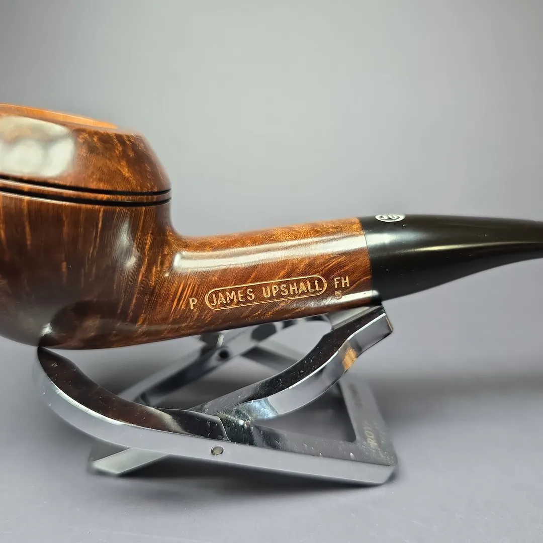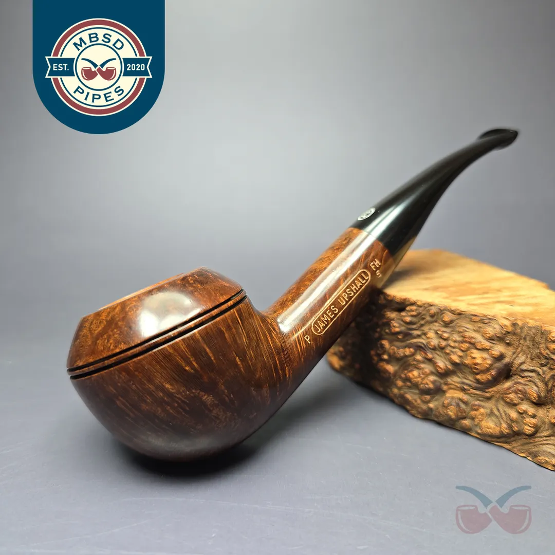James Upshall was, along with Ferndown and Ashton, part of a new wave of British hand-made, high-grade pipes in the late 20th century, with their founders largely coming from previous positions in the factories of companies such as Dunhill and Charatan. James Upshall was founded in 1978 by Barry Jones and Ken Barnes, both of whom had previously worked for Charatan and who had worked their way up to being carvers Charatan’s higher-end, non-standard shapes. Jones and Barnes’ pipes quickly grew to being something of a status symbol, and were enjoyed by King Hussein of Jordan, Anwar Sadat, Bing Crosby, Yul Brynner, Robert Wagner and Tom Selleck. The company also made house-brand pipes for Astleys in London. Sadly, James Upshall pipes are no longer made, but their reputation as some of the finest hand-turned British pipes lives on.