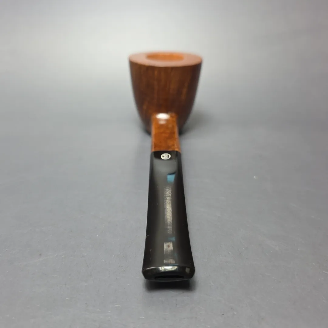The “P” was the highest of James Upshall’s “standard” grades, and one notable for its excellent grain patterns. Taking its name from Charatan’s “Perfection” grade, the “P” was Barry and Ken’s attempt to create their own version of the warm, walnut contrast stain used by Charatan on such pipes. The Upshall boys were a little bolder when it came to comparing the “P” to Charatan in terms of quality, however. As Ken Barnes would later recount, the “P” was, rather, much closer to Charatan’s “Distinction,” presumably those of the quality Barnes and Jones saw first-hand when working there (under Reuben Charatan and Herman Lane, and Herman Lane, respectively). In the case of this one, it’s a relatively traditional, straight grain, Dublin rendition, though just like many a Charatan freehand, it also incorporates elements of the panel—as well as a considerable heft—that keep the design fresh and interesting.