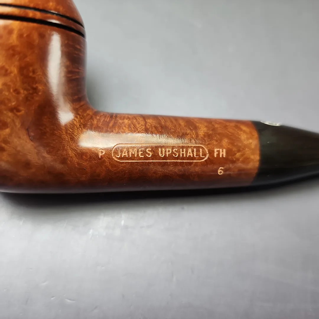 James Upshall was, along with Ferndown and Ashton, part of a new wave of British hand-made, high-grade pipes in the late 20th century, with their founders largely coming from previous positions in the factories of companies such as Dunhill and Charatan. James Upshall was founded in 1978 by Barry Jones and Ken Barnes, both of whom had previously worked for Charatan and who had worked their way up to being carvers Charatan’s higher-end, non-standard shapes. Jones and Barnes’ pipes quickly grew to being something of a status symbol, and were enjoyed by King Hussein of Jordan, Anwar Sadat, Bing Crosby, Yul Brynner, Robert Wagner and Tom Selleck. The company also made house-brand pipes for Astleys in London. James Upshall pipes are no longer made, but their reputation as some of the finest hand-turned British pipes continues to endure.