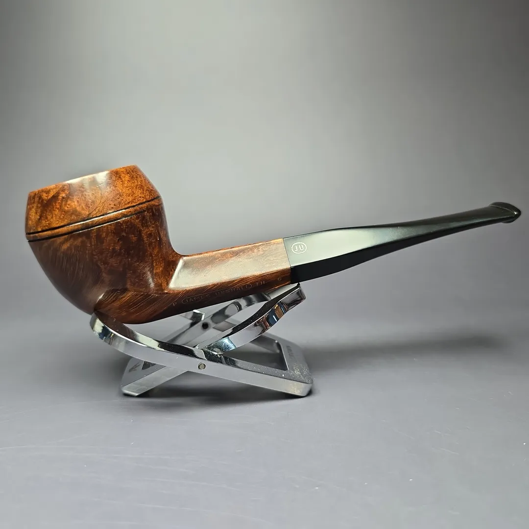 James Upshall was, along with Ferndown and Ashton, part of a new wave of British hand-made, high-grade pipes in the late 20th century, with their founders largely coming from previous positions in the factories of companies such as Dunhill and Charatan. James Upshall was founded in 1978 by Barry Jones and Ken Barnes, both of whom had previously worked for Charatan and who had worked their way up to being carvers Charatan’s higher-end, non-standard shapes. Jones and Barnes’ pipes quickly grew to being something of a status symbol, and were enjoyed by King Hussein of Jordan, Anwar Sadat, Bing Crosby, Yul Brynner, Robert Wagner and Tom Selleck. The company also made house-brand pipes for Astleys in London. Sadly, James Upshall pipes are no longer made, but their reputation as some of the finest hand-turned British pipes lives on.