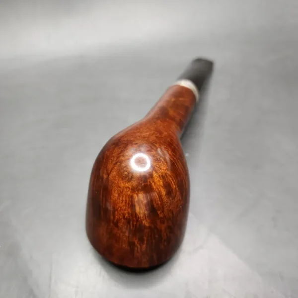 It is always a treat to see the greats of English pipe-making working together. This James Upshall A-grade Dublin is a subtle, but nonetheless beautiful example. After all, it was turned and cut by former Charatan masters Barry Jones, Kennedy Barnes, and the Upshall team, before being fitted with an ornate, engine-turned sterling silver band by former Dunhill master Leslie Wood. The wide, slightly squat shaping of the pipe is very much in the Lane era Charatan mold, albeit with a taper stem and Upshall’s distinctly thick bowl walls. Lastly, the pipe is finished in Upshall’s chestnut tan stain, draped over flame grain that shines almost as brightly as its L&JS silverware.