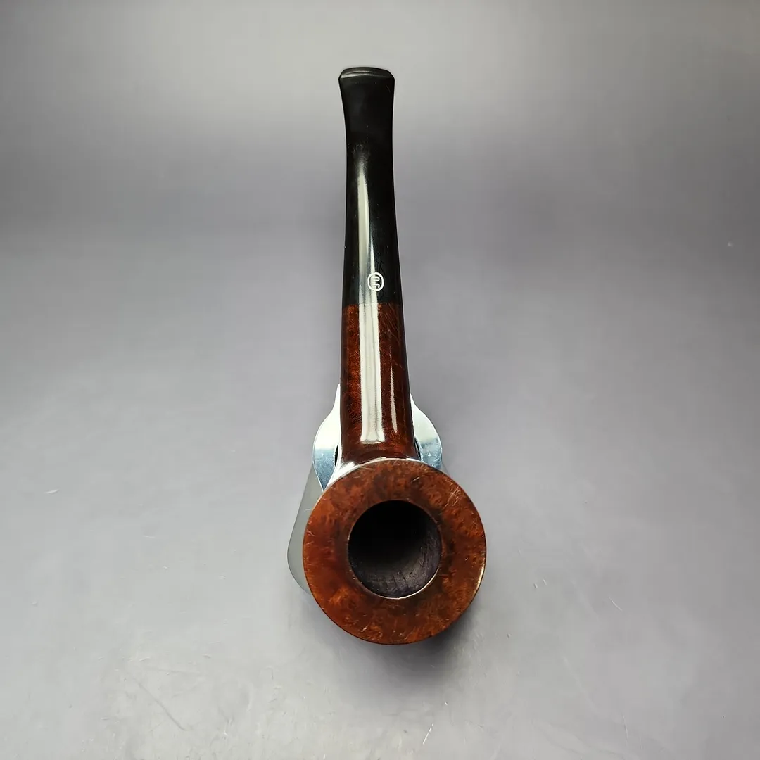 The Tilshead was the first rung on the ladder of James Upshall’s grading system, named for the English village where the company’s workshop was located (a naming practice that is something of a tradition in English pipe-making). They were made the exact same way as the various grades above them, being hand turned and having hand cut stems, and even shared similar finishes with these other grades, such as the A and S. The only difference was the grain patterns, but even then, it’s hard to consider the Tilshead a “second,” as one finds, for example with Dunhill’s Parker, or even Comoy’s Guildhall pipes. This one’s a kind of large Dublin Zulu hybrid, dressed in a warm, walnut finish.