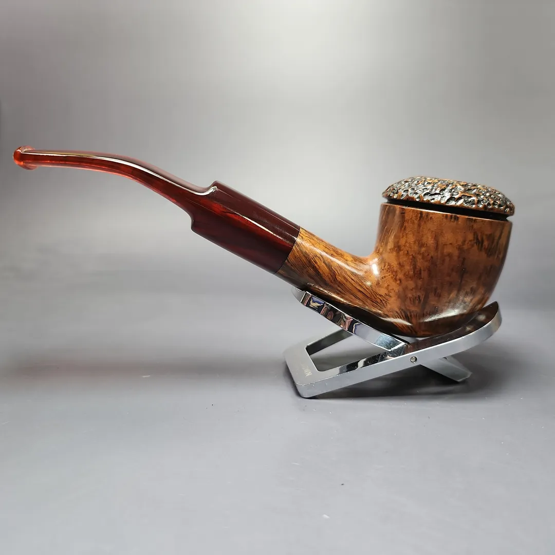 As is J.M. Boswell’s style, this particular pipe is a hearty, no-nonsense American take on an old classic: the Rhodesian. Characterized by its large, muscular stature, mixed finish, and amber-toned acrylic stem, I’ve no doubt that it will be a solid smoker, as Boswell’s pipes tend to be, and will indeed look plenty good doing it.