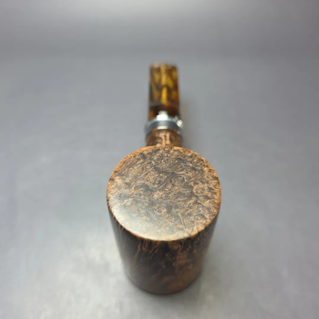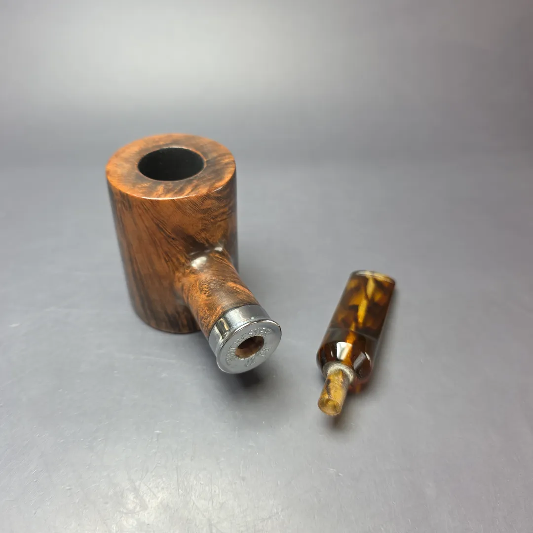 J.M. Boswell makes pipes in a variety of styles, but few encapsulate the old school, American-made ethos of his work than his army mount pieces. A large part of this is because, when he makes an army mount pipe, he uses a genuine shell casing—in this instance, a Winchester 12 gauge. Indeed, it’s hard to think of a more “American” pipe than one such as this, taking the form of a poker shape that’s about as stout as it gets, with the aforementioned shell casing mount and a tortoiseshell acrylic stem.