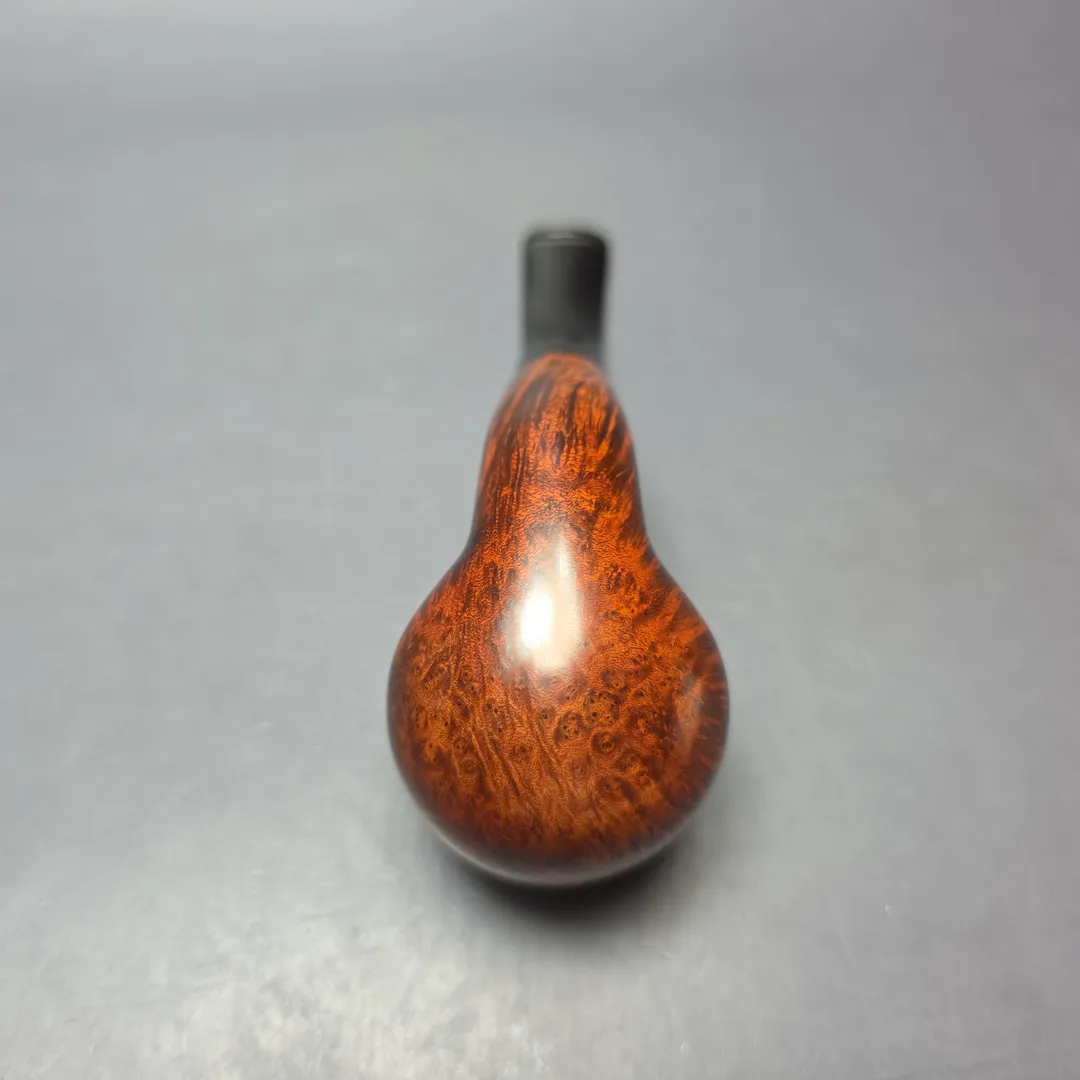 Never has the idiom of the “one man factory” been more appropriate than for Jørn Larsen. Though he tended to stick to a small number of shapes, his complex, highly organized set-up allowed him to approach those shapes with a level of precision and consistency one would expect from a whole floor of specialized workers, rather than a solitary artisan. Jorn’s advantage over a factory apparatus, of course, was being in control of every aspect of every pipe, ensuring that each was up to his own, high standards. Here we find an example of one of his brandy renditions, one that is relatively classical, though with a healthy dose of the plumpness typical of post-war Danish pipes—a nice middle ground between, say, an early 20th century Peterson and a 1980s Jess.