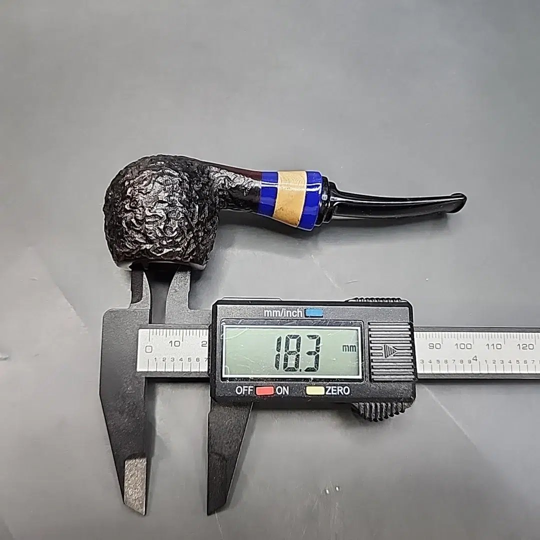 As a big fan of Danish pipes, I was pleased to get this pipe from Karim for the store. It reminded me of the rustication styles used by Tom Eltang and his students Mike Sebastian Bay and Johannes Rasmussen of Suhr Pipes. It’s a strange, veiny and viscous approach to rustication, which works as an interesting counterpoint to the relatively traditional shape of the pipe, being a small apple.