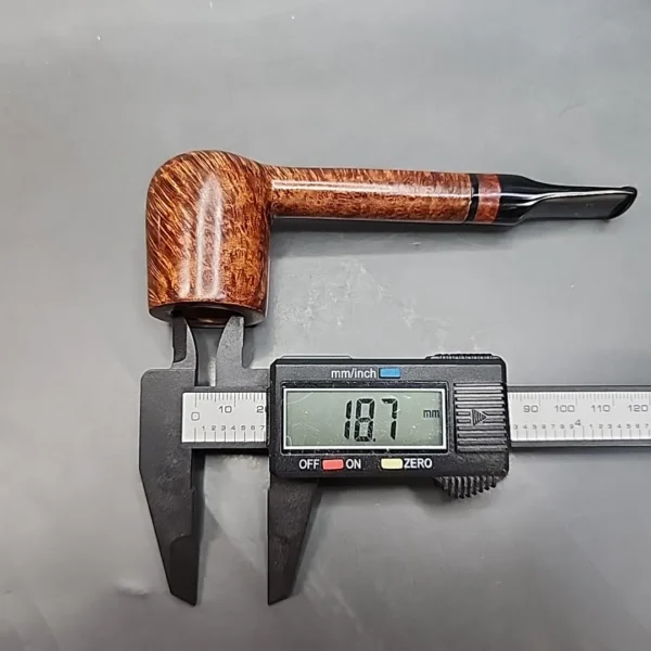 This Lovat from Karim is a simple but perfectly executed Lovat shape. The bowl is covered in swirling flame grain, which is accentuated by a golden contrast stain, while the stem is ebonite, with a briar accent inlay. The cherry on top is the weight, as the pipe is only 38 grams. As such, it should be light enough to clench with relative ease, especially given its comfortable, ebonite stem.