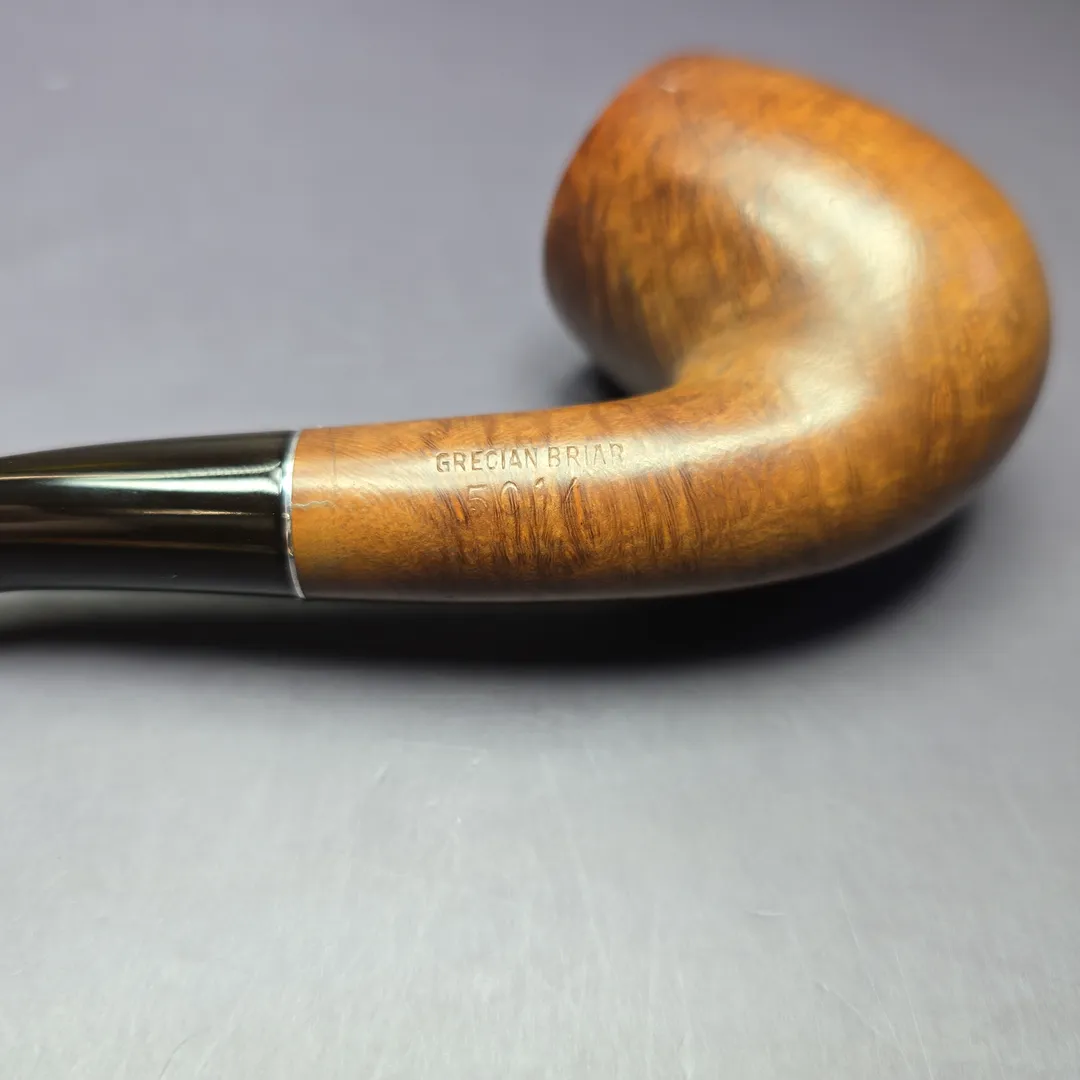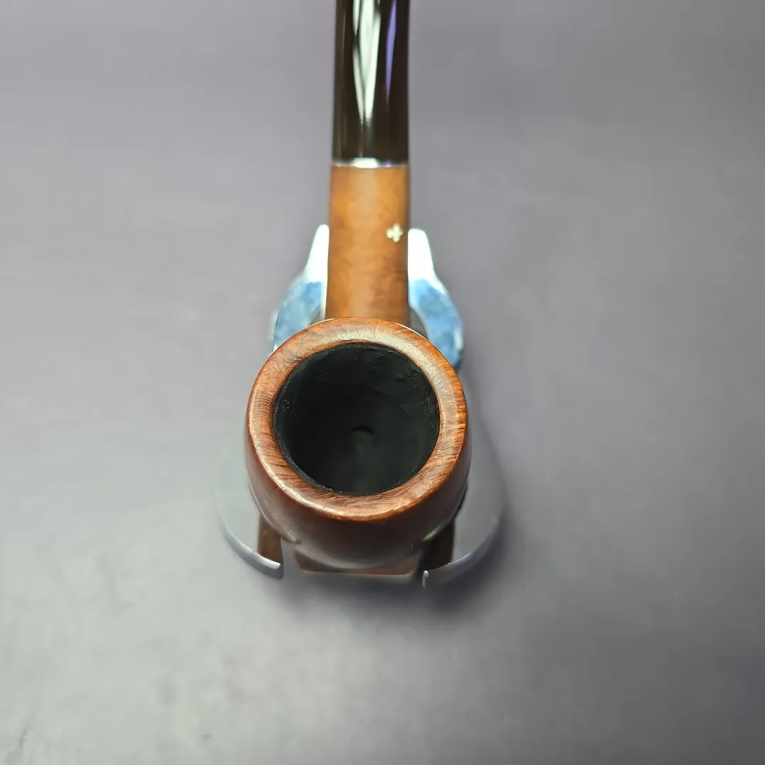 The condition is good, especially for a nearly 100 year old pipe. Some inner rim charring and handling marks, and quite faded nomenclature on the shank’s left side. As a Super Grain, however, it is readily identifiable by its other markings, such as the cloverleaf inlay and the indicator of “Grecian briar.”