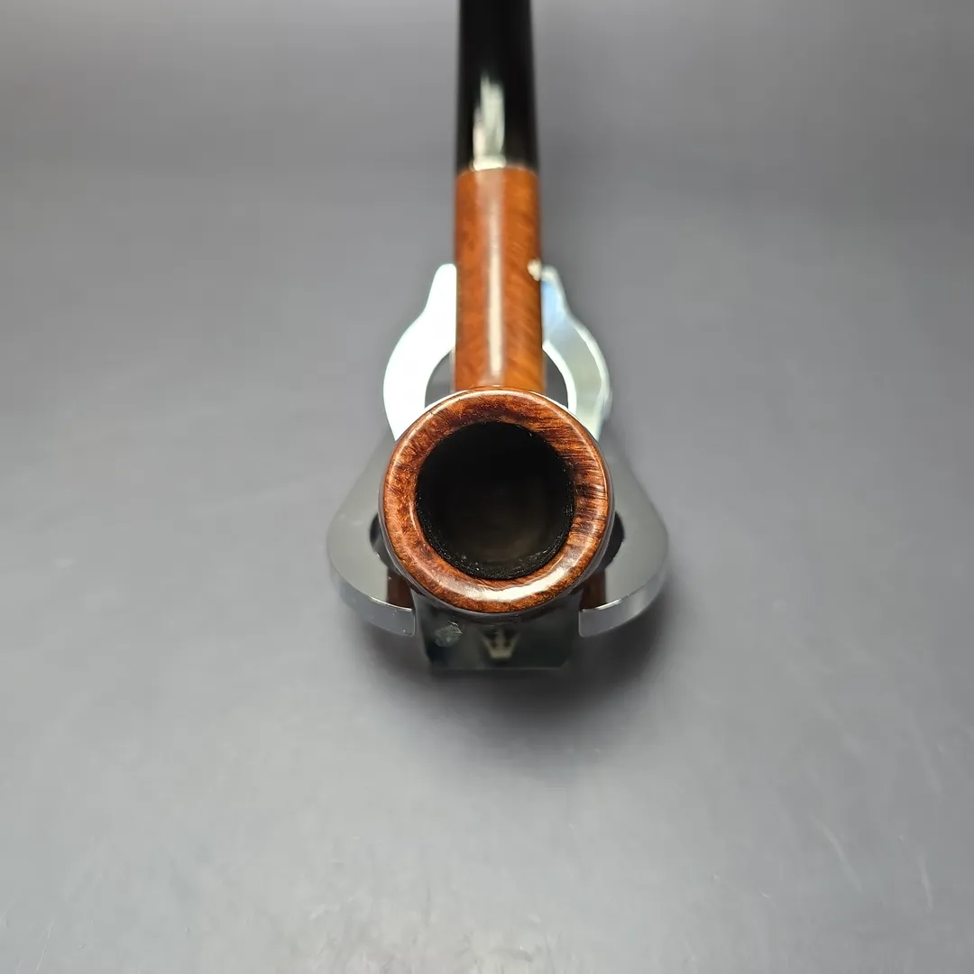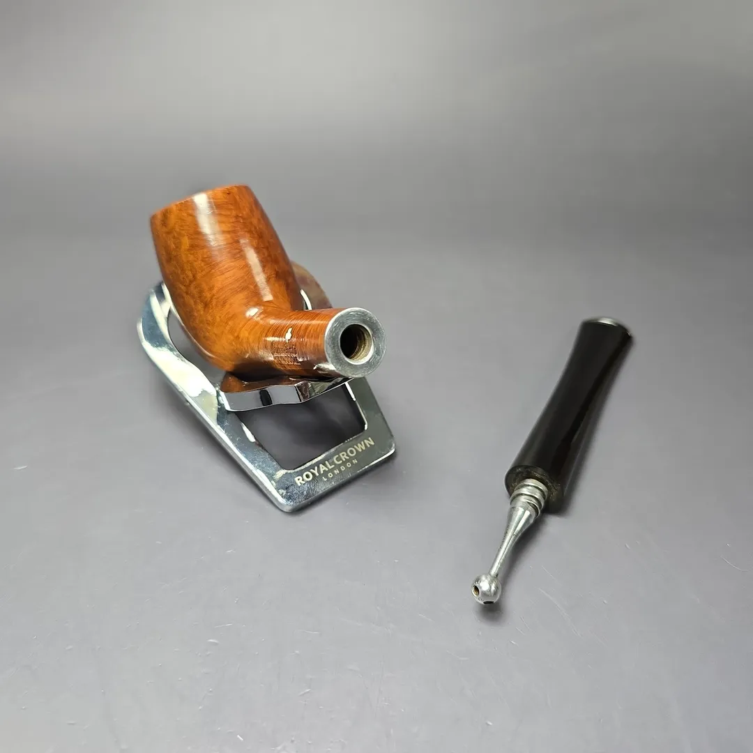 As is the case with many historic pipe brands, Kaywoodies have a sizeable collectors market, with older pieces holding a special place within that market. A difficulty arises, however, when one takes into account that unlike, for example, most Dunhill pipes, most Kaywoodies are not stamped with a year of manufacture. Instead, one has to rely on other cues to narrow down a timeframe for the latter. A four-digit shape code, for example, indicates the pipe was made prior to 1936. The presence of a four-hole Drinkless stinger and Synchro-Stem screw fitment (sans a “patent applied for” stamp) indicates the pipe was made after 1924 and 1932 respectively, as these were the years that the former and latter had their patents approved. Thus, in this instance, we find ourselves in the rare situation of being able to isolate the timeframe in which this Kaywoodie was produced to between 1932 and 1936. As Richard Hacker has noted, the 1920s and 1930s were the decades that made Kaywoodie such a giant in the pipe world, in part owing to their superior briar. Looking at this long, lightweight, slightly brandy-ish billiard, one can plainly see that being the case.