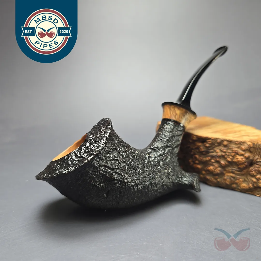 Kent Rasmussen Sandblasted Asymmetric Elephant’s Foot w/ Masur Birch Estate Briar Pipe, Unsmoked