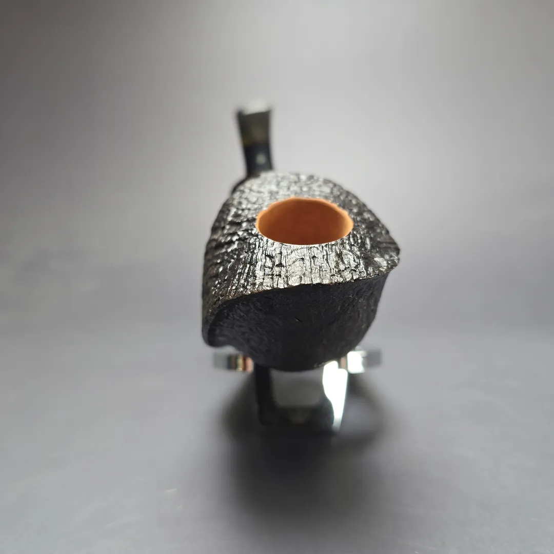 In the case of this one, for example, which I am sure has a given name, I’m inclined to think of it as a unique, asymmetric take on the classic Bo Nordh shape, the Elephant’s Foot. Approached from the right flank, it features the hallmark flattened face, paneled side, and blunt “point” at the bowl’s base, yet a full 360 degree view reveals that this is only half of the story. The left flank features, instead, a far smoother transition from the bowl’s front to its side, making the Foot’s hallmarks on the left seem almost like an outgrowth that expands and travels down before furling back inward again. That Rasmussen considers his pipes to be miniature sculptures might strike as pretentious to some, though when you have one in your hand, it’s hard to think of anything more appropriate.