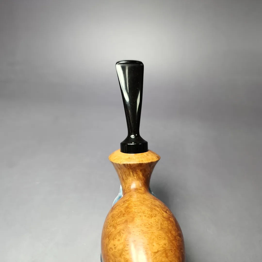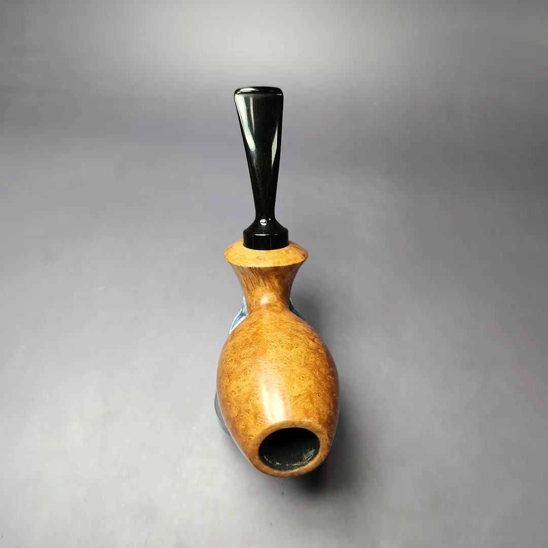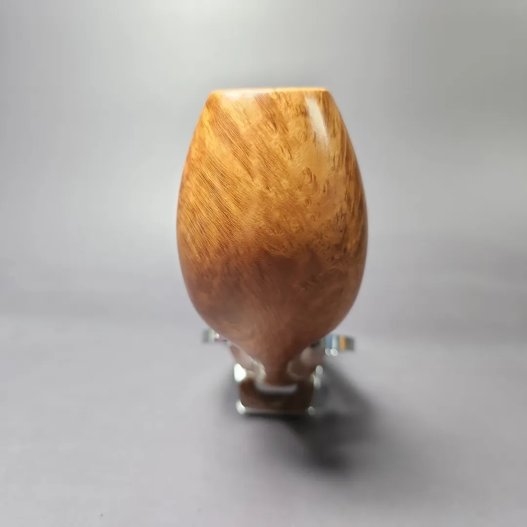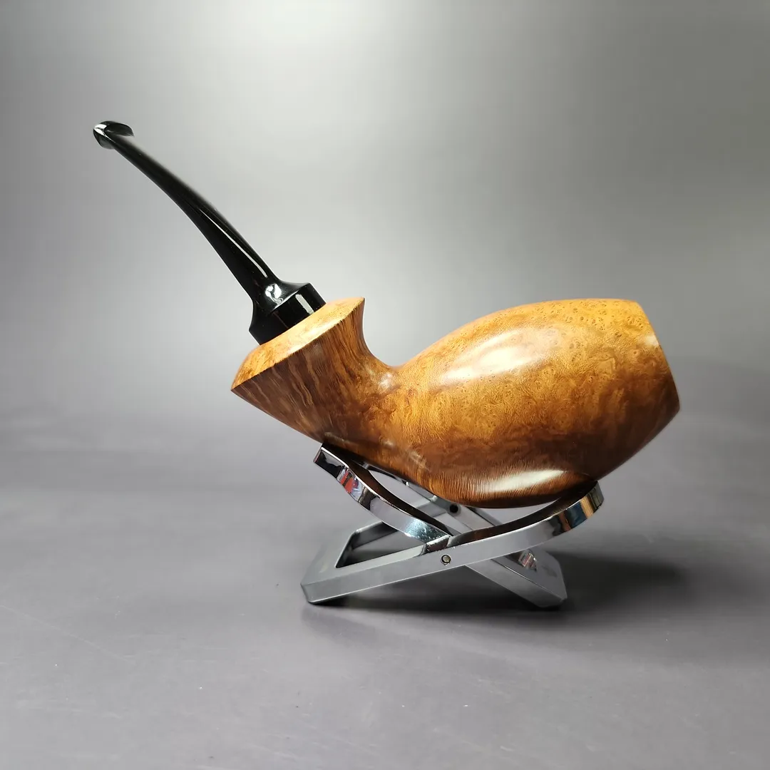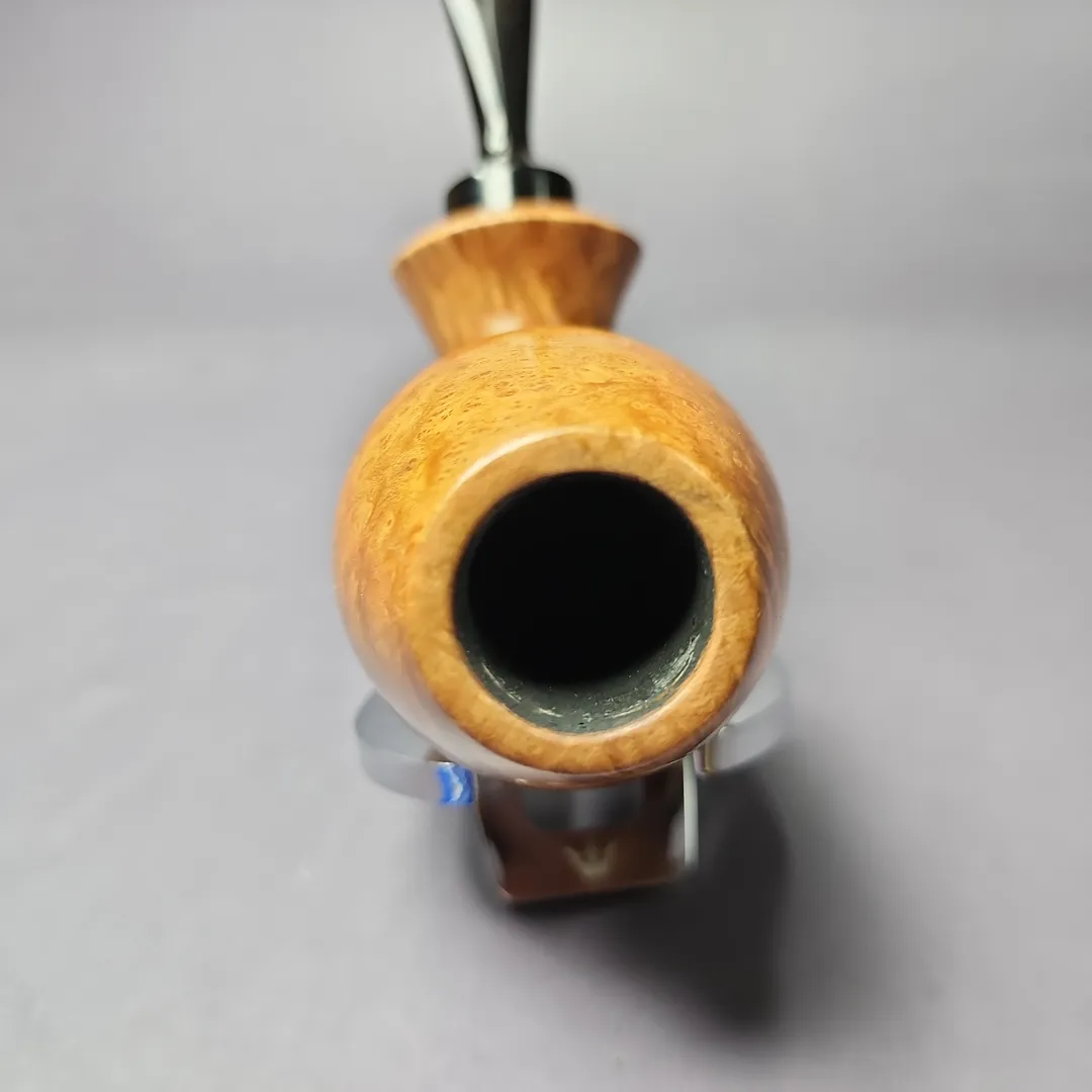While seemingly inactive these days, Kurt Huhn was a very popular American artisan in the 2000s and 2010s. In fact, he was even chosen to make the Pipe of the Year for pioneering forum alt.smokers.pipes in 2007. This pipe of his is highly distinctive in form, though this was very typical for Huhn’s output. As a carver, he was faithful to the ethos of letting a shape emerge from the briar as per the briar’s wishes, rather than sticking to a predetermined plan. As a result, Huhn’s pipes were often out of the ordinary, even compared to his emerging American peers. In the case of this curious, cutty-ish, stacked bent egg, it almost looks like there’s a Japanese or German influence—though I’m sure Huhn would simply say he was doing what the briar wanted.